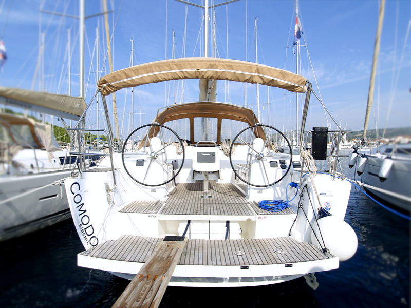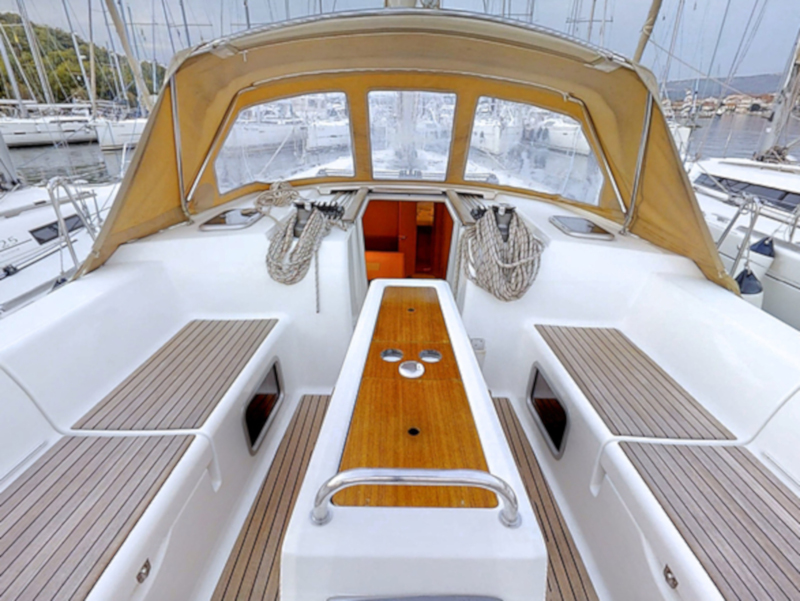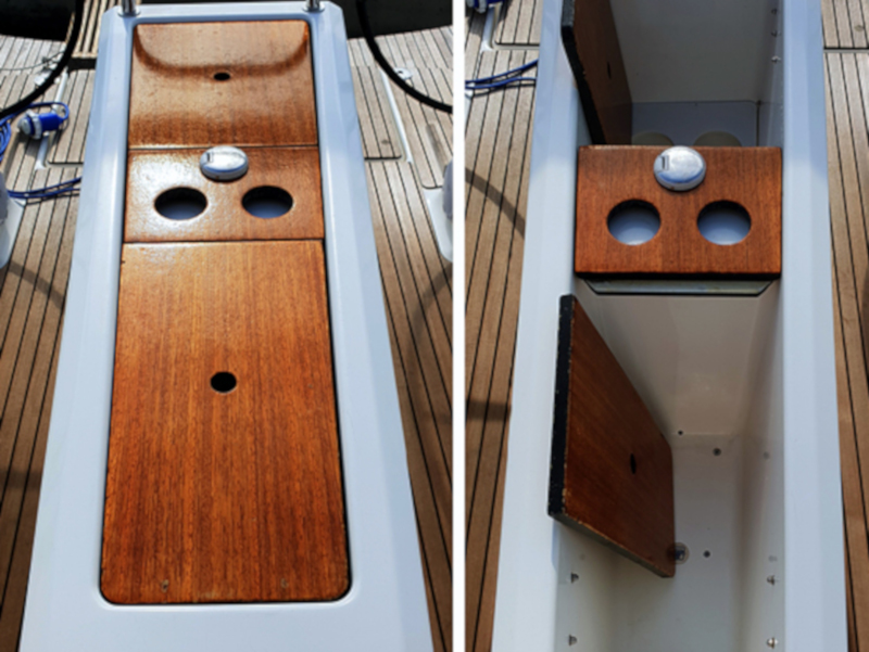 | Outside | 12 V-Anschluss, Badeleiter, Badeplattform, Biminitop, Cockpitdusche, Cockpittisch, Dieselkanister , elektr. Ankerwinsch, Fender, Sprayhood, Wasserschlauch |