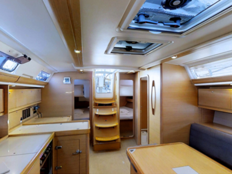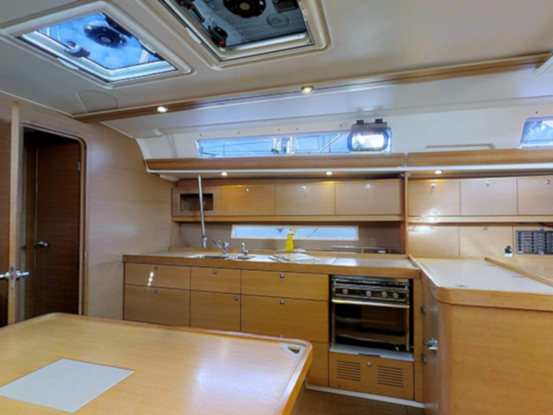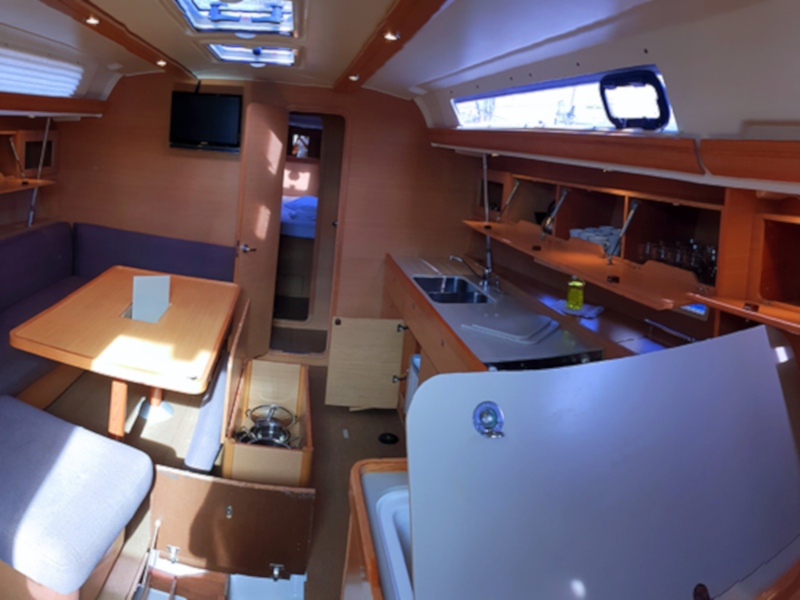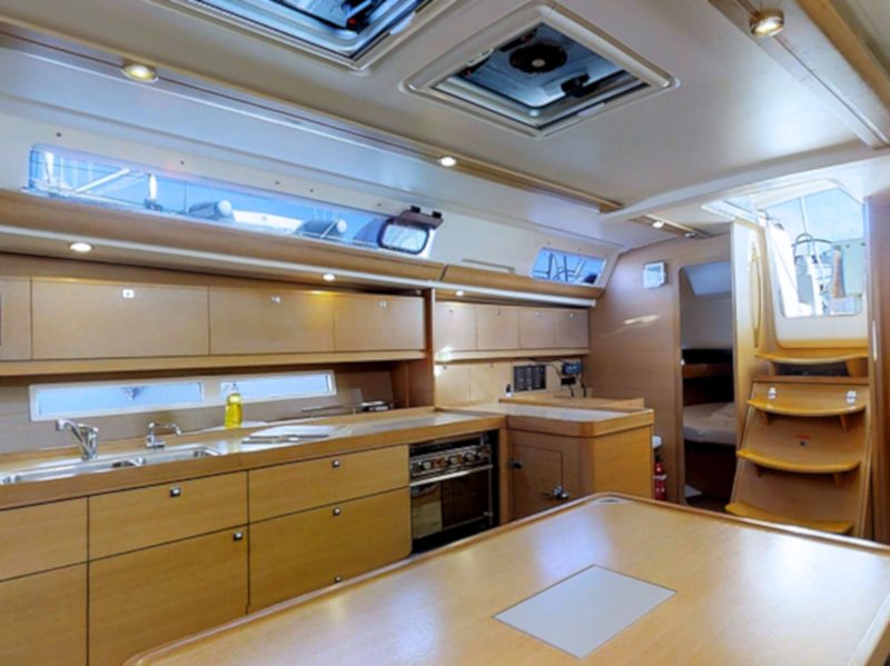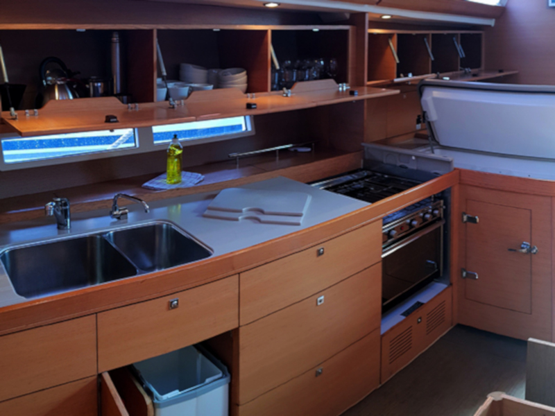 | Inside | Gasherd mit Backofen, Heizung, Kühlschrank, Landstromkabel, Luftpumpe für Beiboot, Pantryausstattung, Radio mit CD, Salontisch absenkbar, Warmwasser |