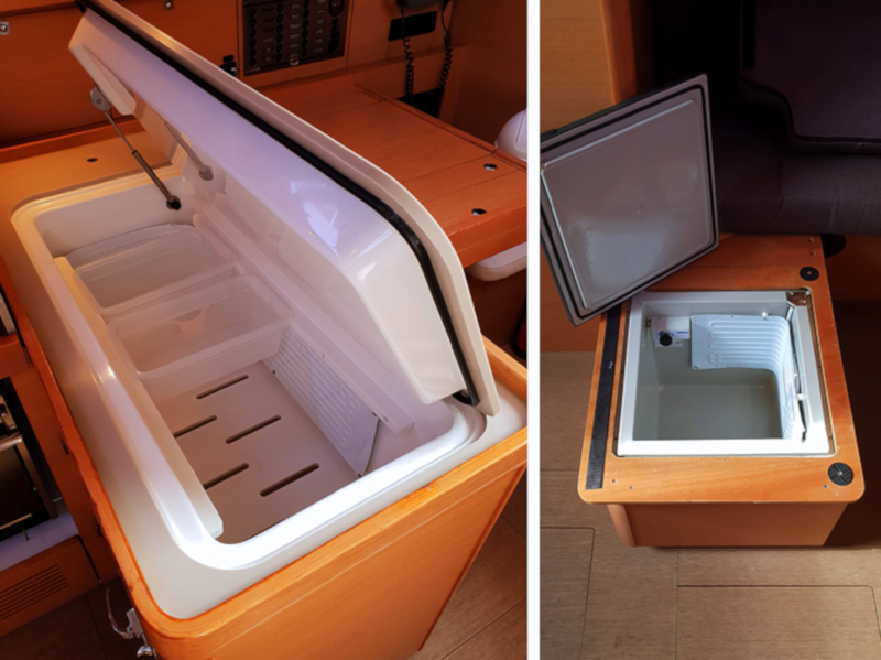 | Safety | Automatikwesten, Autopilot, Bilgepumpe, Bordapotheke, Bugstrahlruder, Feuerlöscher, Notpinne, Notsignale, Radarreflektor, Rettungsinsel, Sicherheitsausrüstung, Sicherheitsgurt, UKW-Funk, Zweitanker |