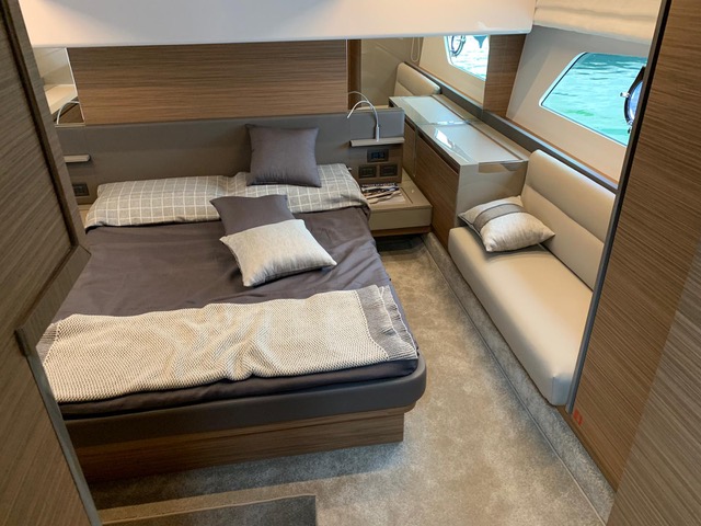 | Outside | Badeplattform (hydr.), Biminitop, Cockpitpolster, Festmacherleinen, Flybridge, hydraul. Gangway, Teakdeck |
