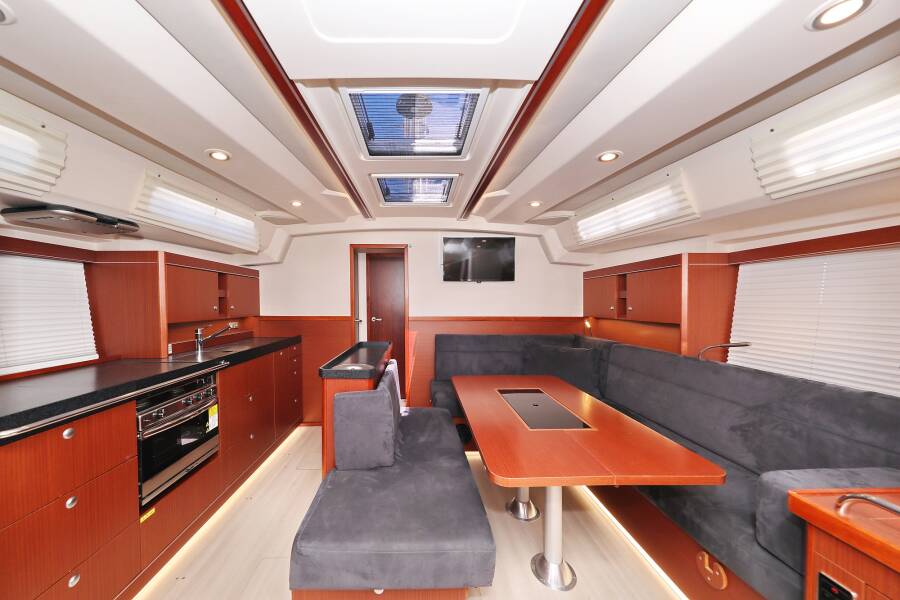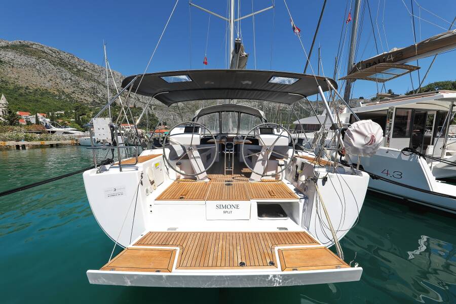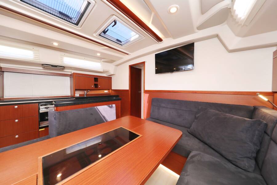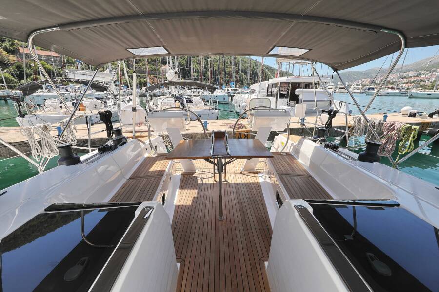| Outside | Badeplattform, Biminitop, Cockpitdusche, Cockpitlautsprecher, Cockpittisch, elektr. Ankerwinsch, elektr. Großwinsch, Sprayhood, Teak im Cockpit |