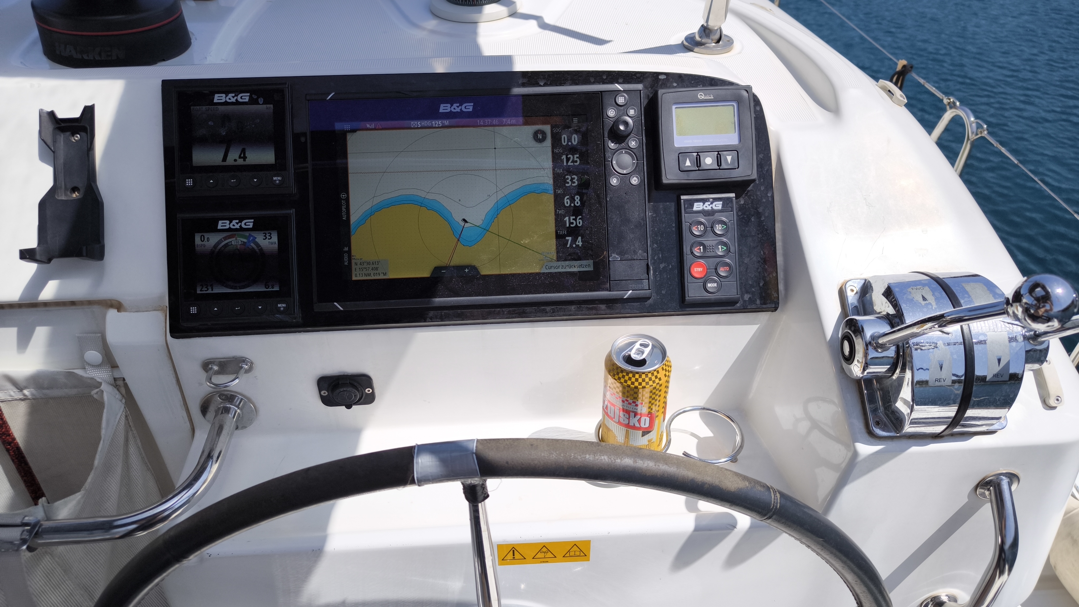| Navigation | Echolot, GPS mit Kartenplotter im Cockpit, Sumlog, Windmesser |