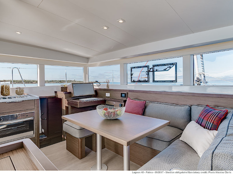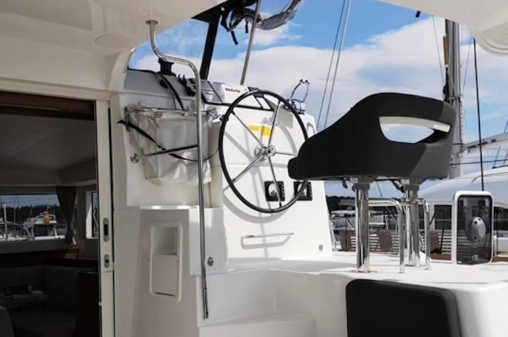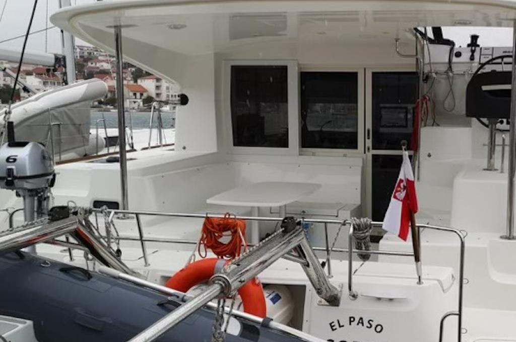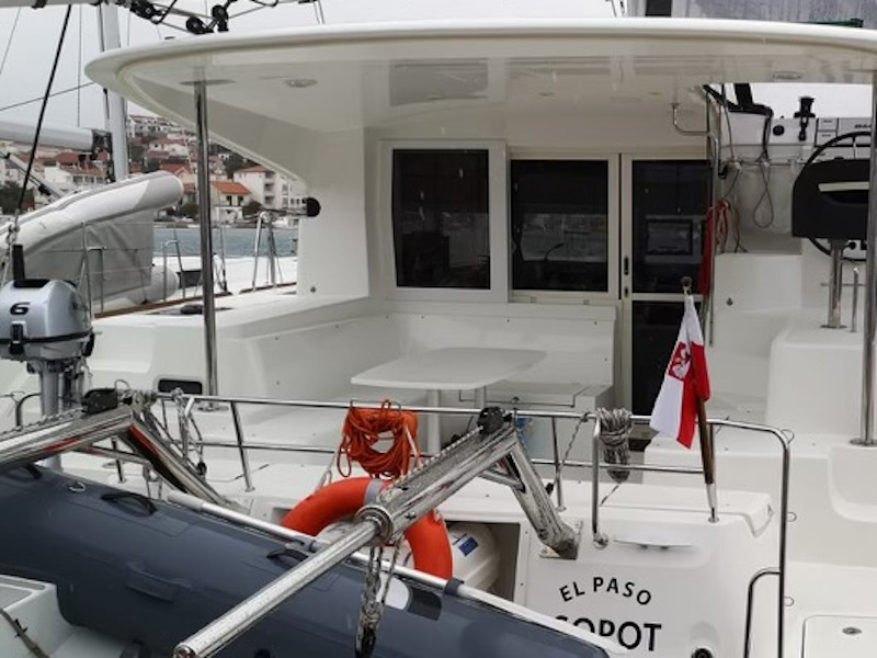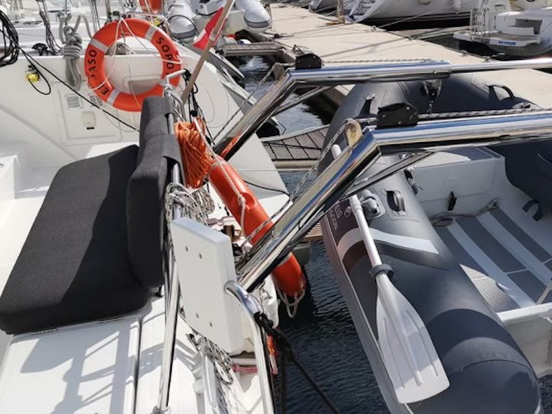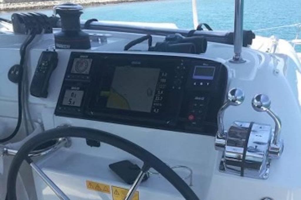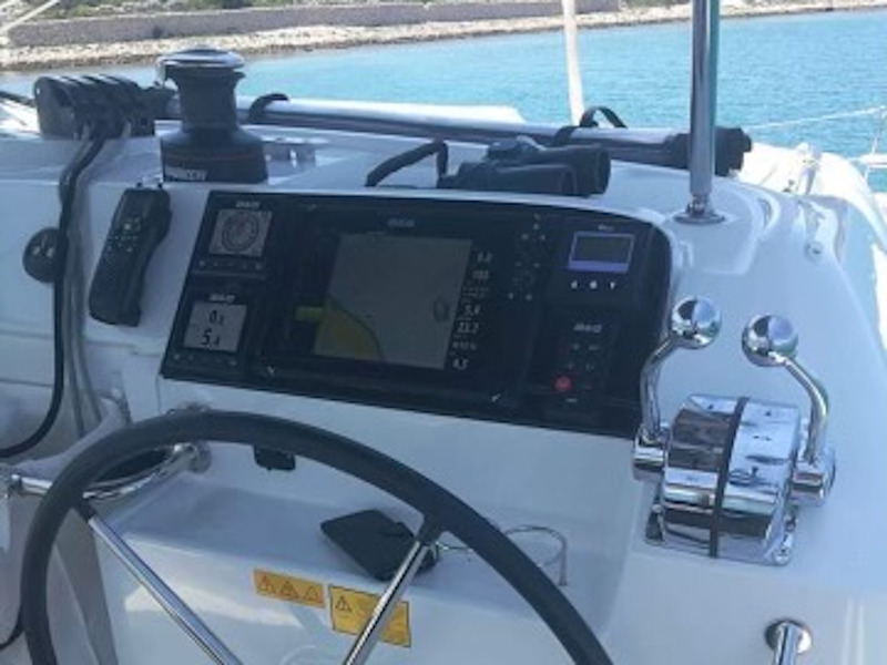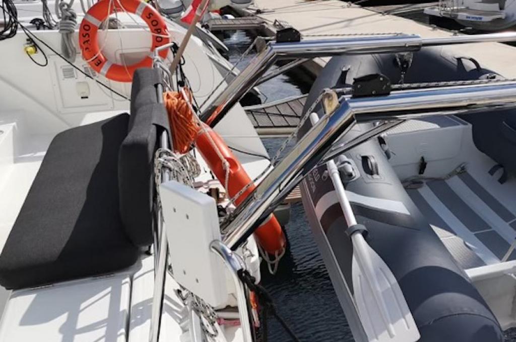 | Outside | Biminitop, Bootshaken, Cockpitdusche warm/kalt, Cockpitlautsprecher, Cockpitpolster, Cockpittisch, elektr. Ankerwinsch, elektr. Großwinsch, Fender, Festmacherleinen, Gangway, Wasserschlauch |