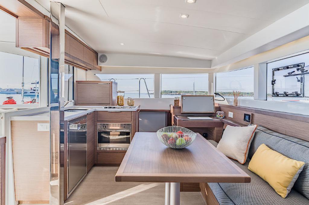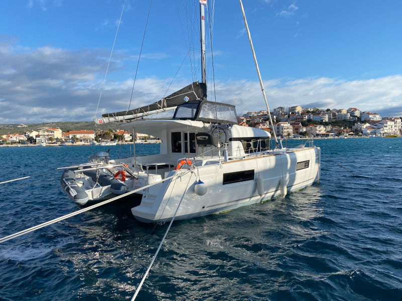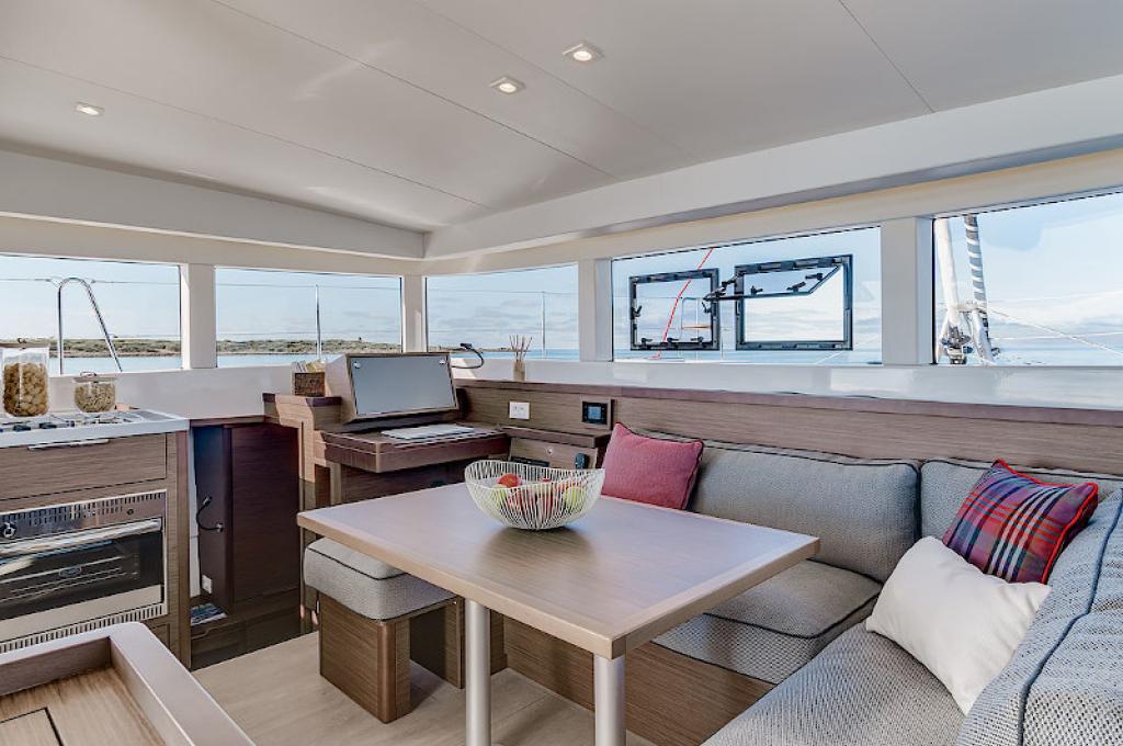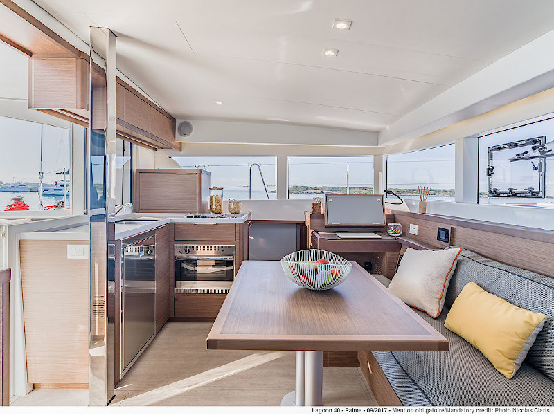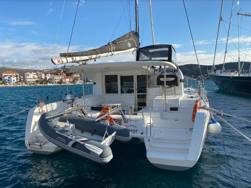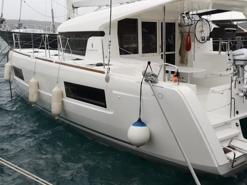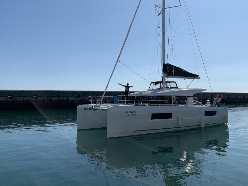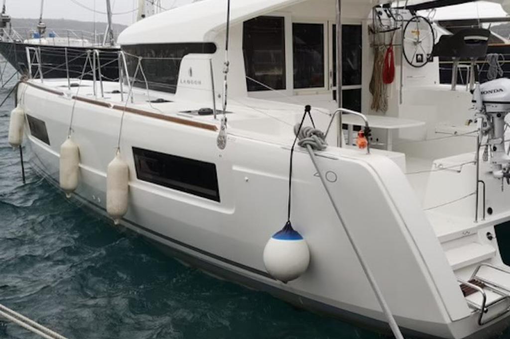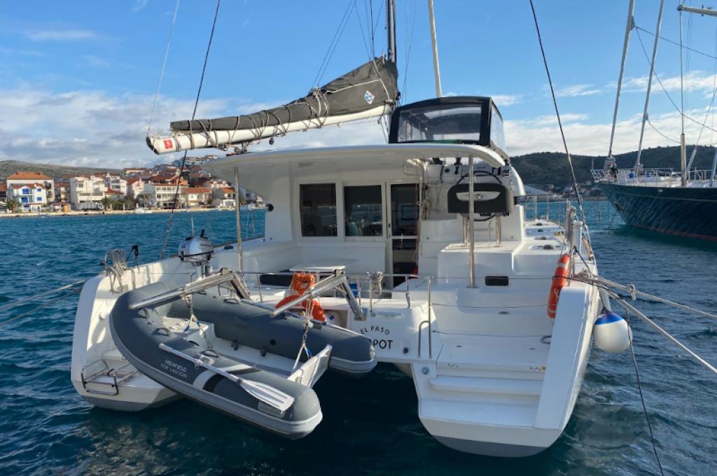 | Outside | Biminitop, Bootshaken, Cockpitdusche warm/kalt, Cockpitlautsprecher, Cockpitpolster, Cockpittisch, elektr. Ankerwinsch, elektr. Großwinsch, Fender, Festmacherleinen, Gangway, Wasserschlauch |