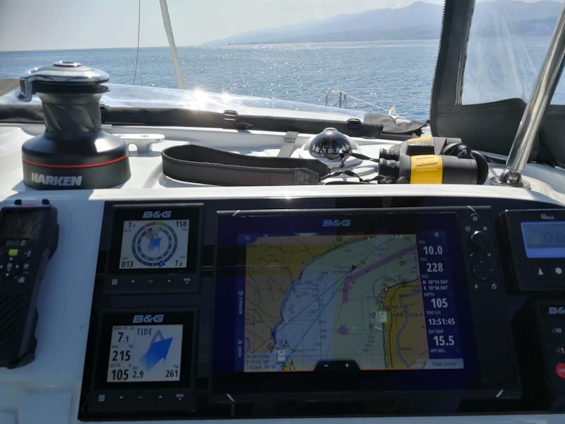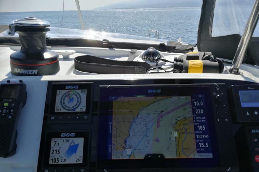 | Navigation | Barometer, Fernglas, GPS mit Kartenplotter im Cockpit, Hafenhandbücher, Kompass, Navigationsbesteck, Seekarten, Tridata (Log, Echolot, Windm.), Windmesser |