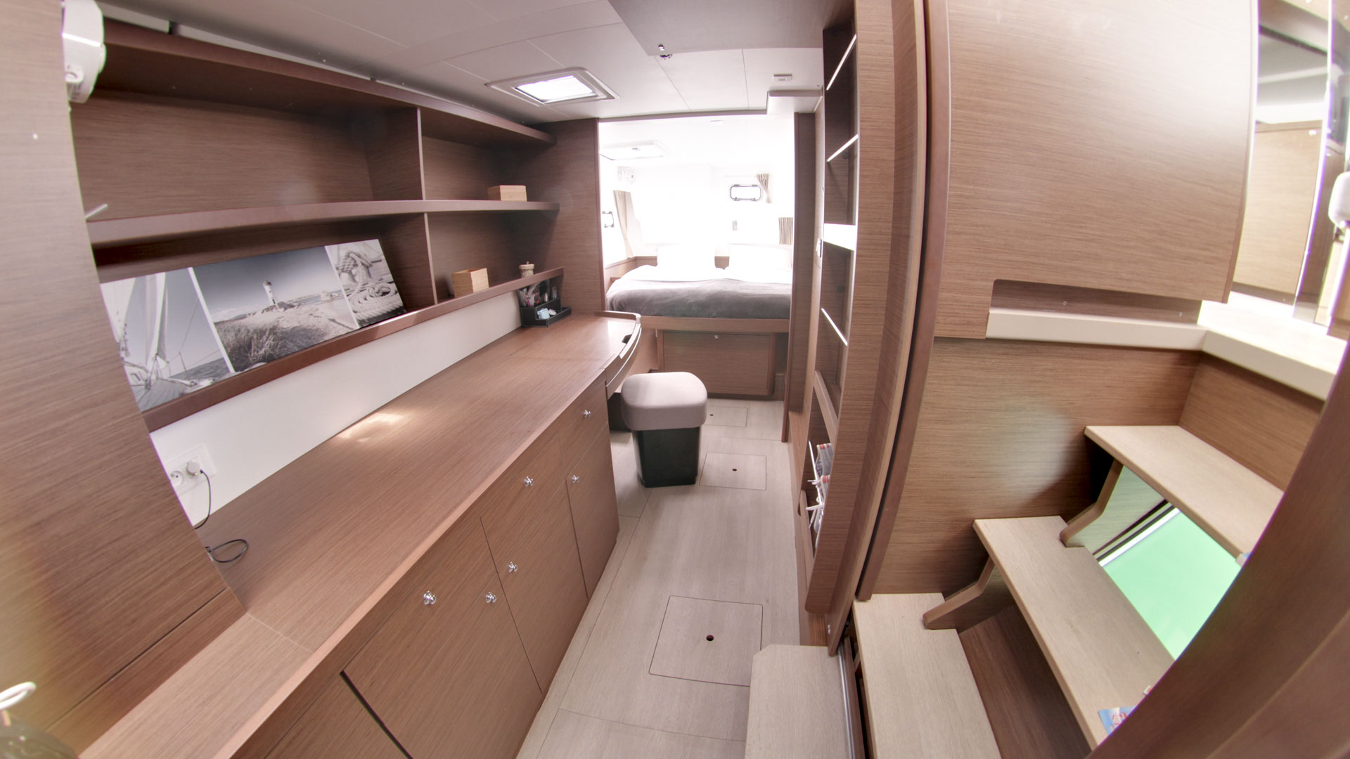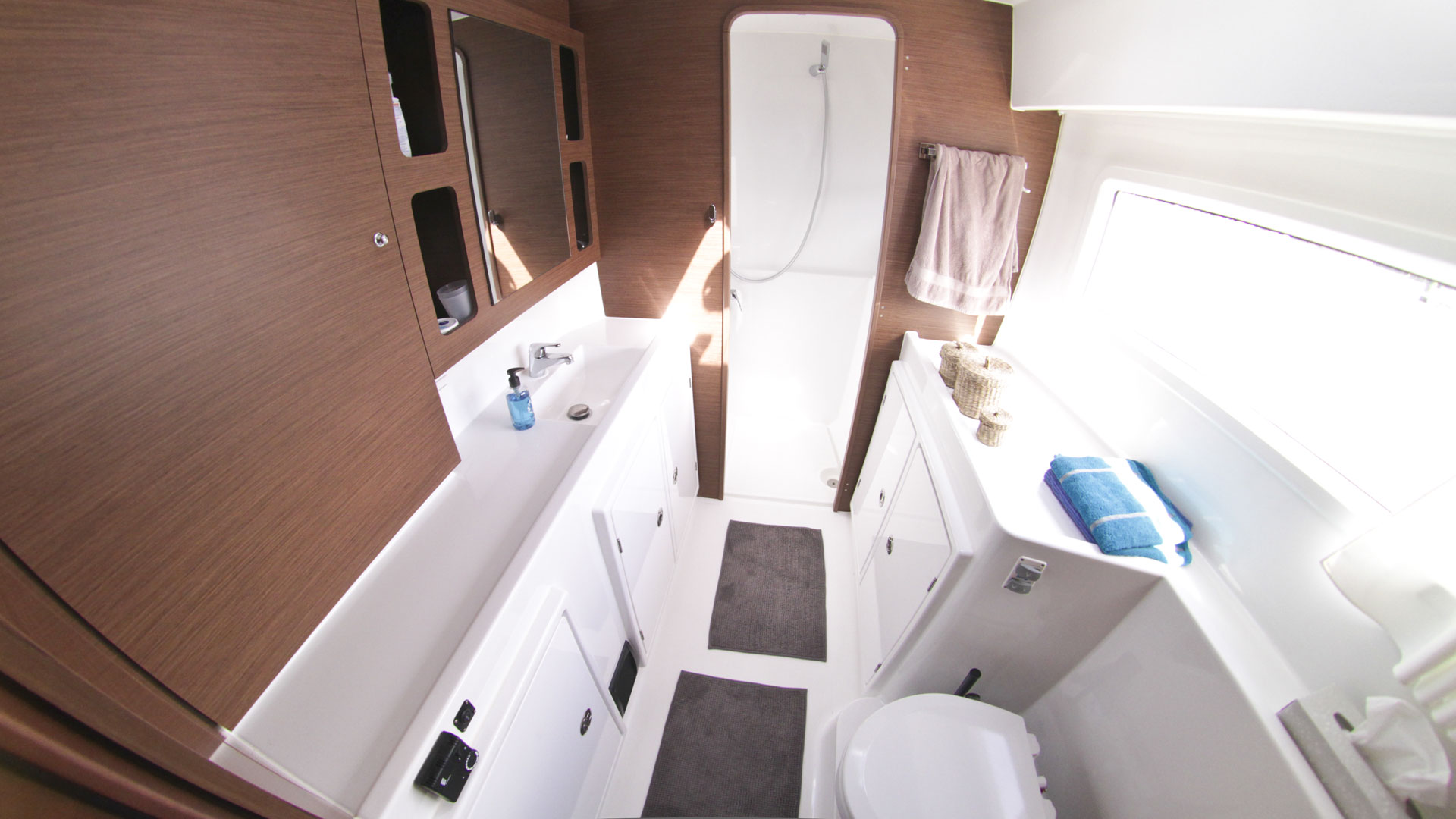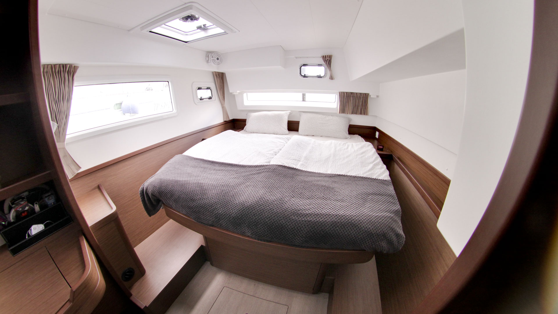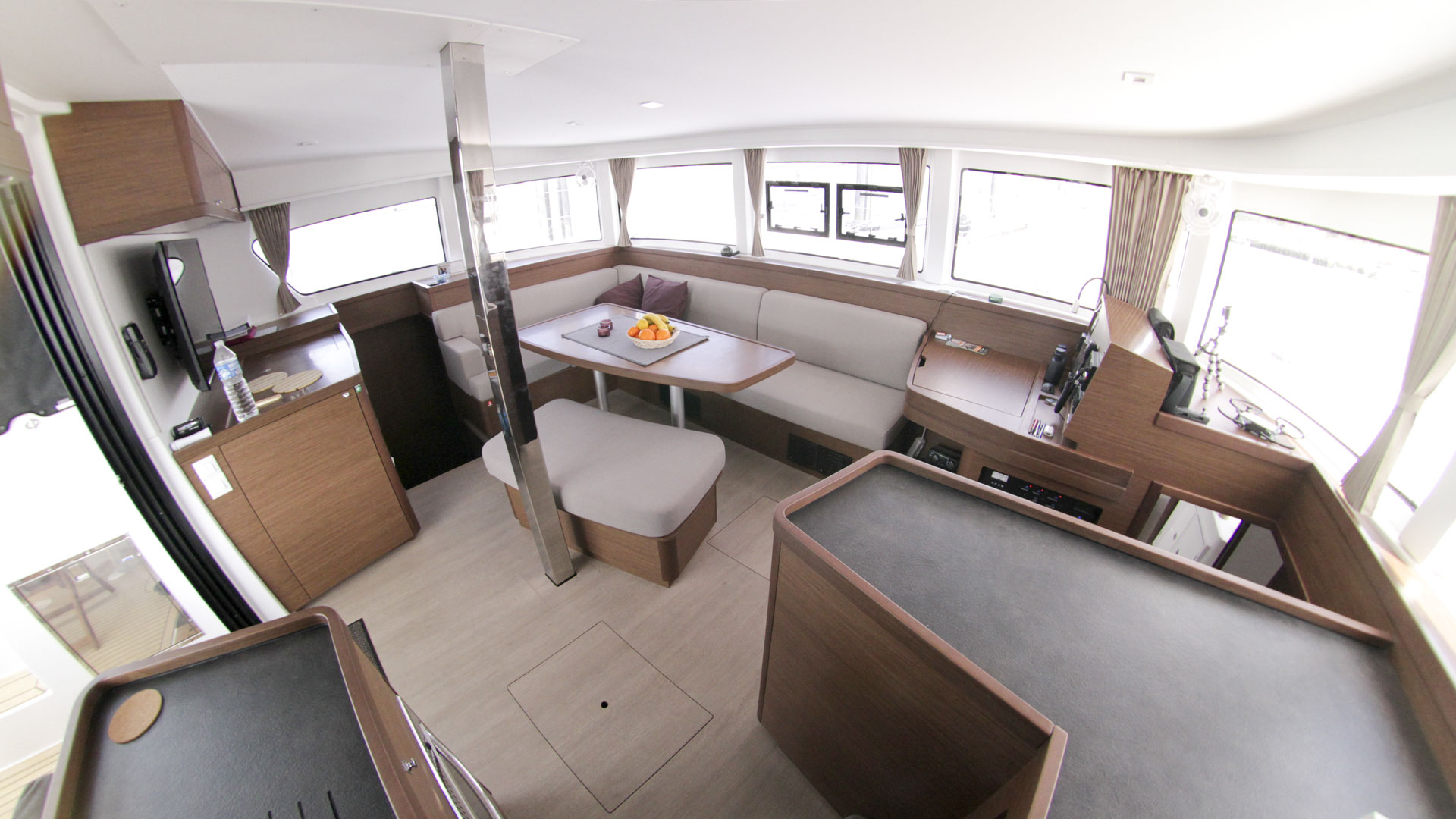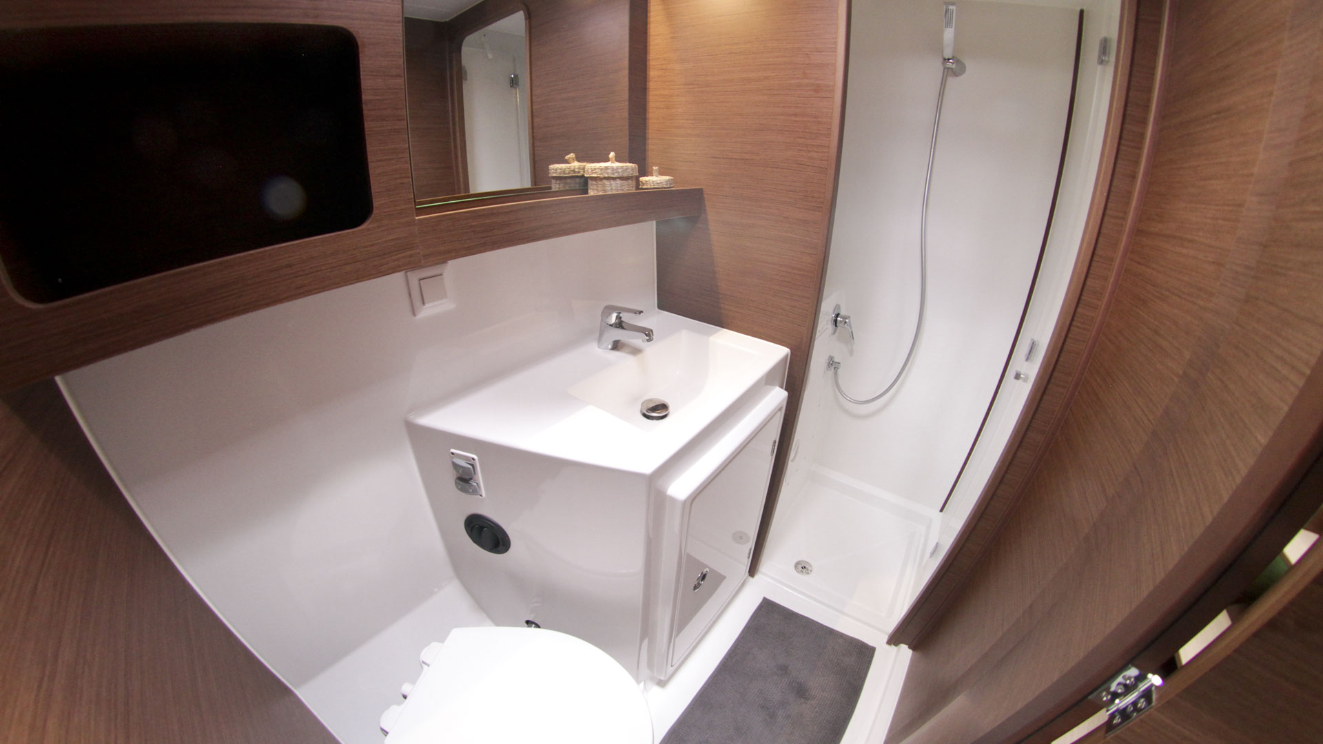 | Inside | Backofen, Borduhr, Fäkalientank, FUSION Sound System, Gasherd, Gefrierschrank, Heizung, Inverter 12V/220V, Kaffeemaschine, Kühlschrank, Ladegerät, Landstromkabel, Mikrowelle, Pantryausstattung, Radio mit CD, MP3, AUX-In, Safe für Wertsachen, Salontisch absenkbar, TV mit DVBT, USB Steckdose, Ventilatoren in Kabinen, Warmwasser, WC (elektr.) |