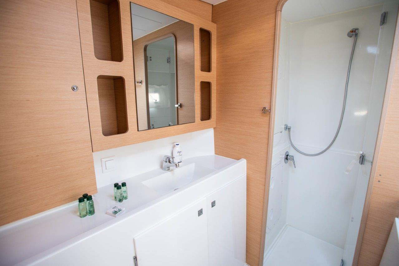 | Inside | Backofen, Fäkalientank, Gasherd, Gefrierschrank, Generator, Heizung, Kaffeemaschine, Klimaanlage (ohne Landstrombedarf), Kühlschrank, Ladegerät, Mikrowelle, Pantryausstattung, TV, Warmwasser, Watermaker, WC (elektr.) |