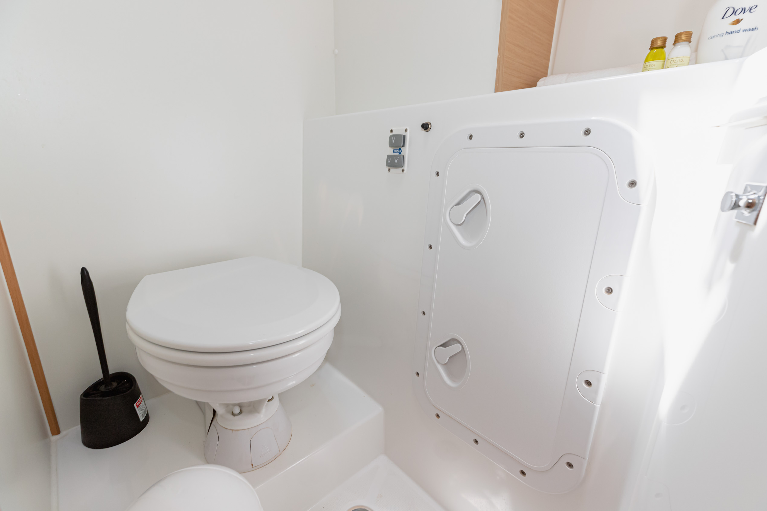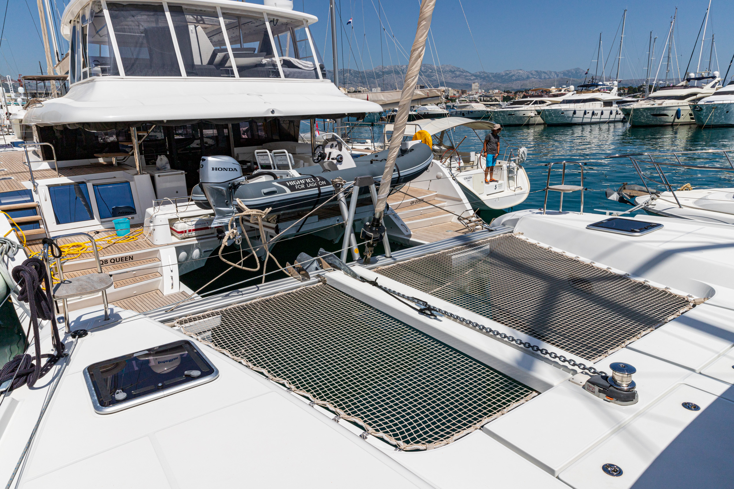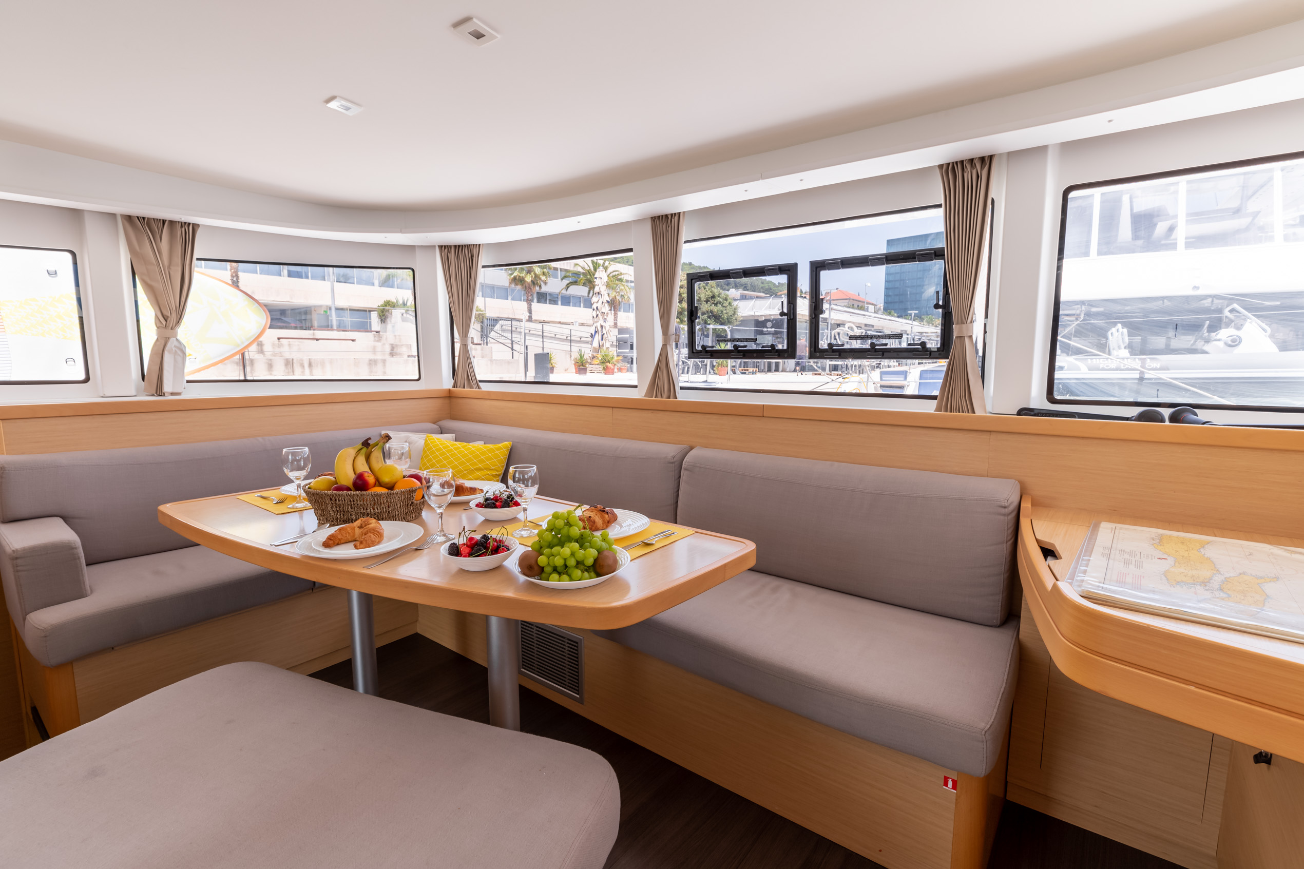 | Inside | 2. Kühlschrank, Gasherd, Generator, Geschirr, Kaffeemaschine, Klimaanlage (Salon), Ladegerät, Pantryausstattung, Radio mit CD, MP3, USB und Bluetooth, Radio mit USB, Spülbecken, Ventilatoren in Kabinen, Warmwasser, Wasserkocher, WC (elektr.) |