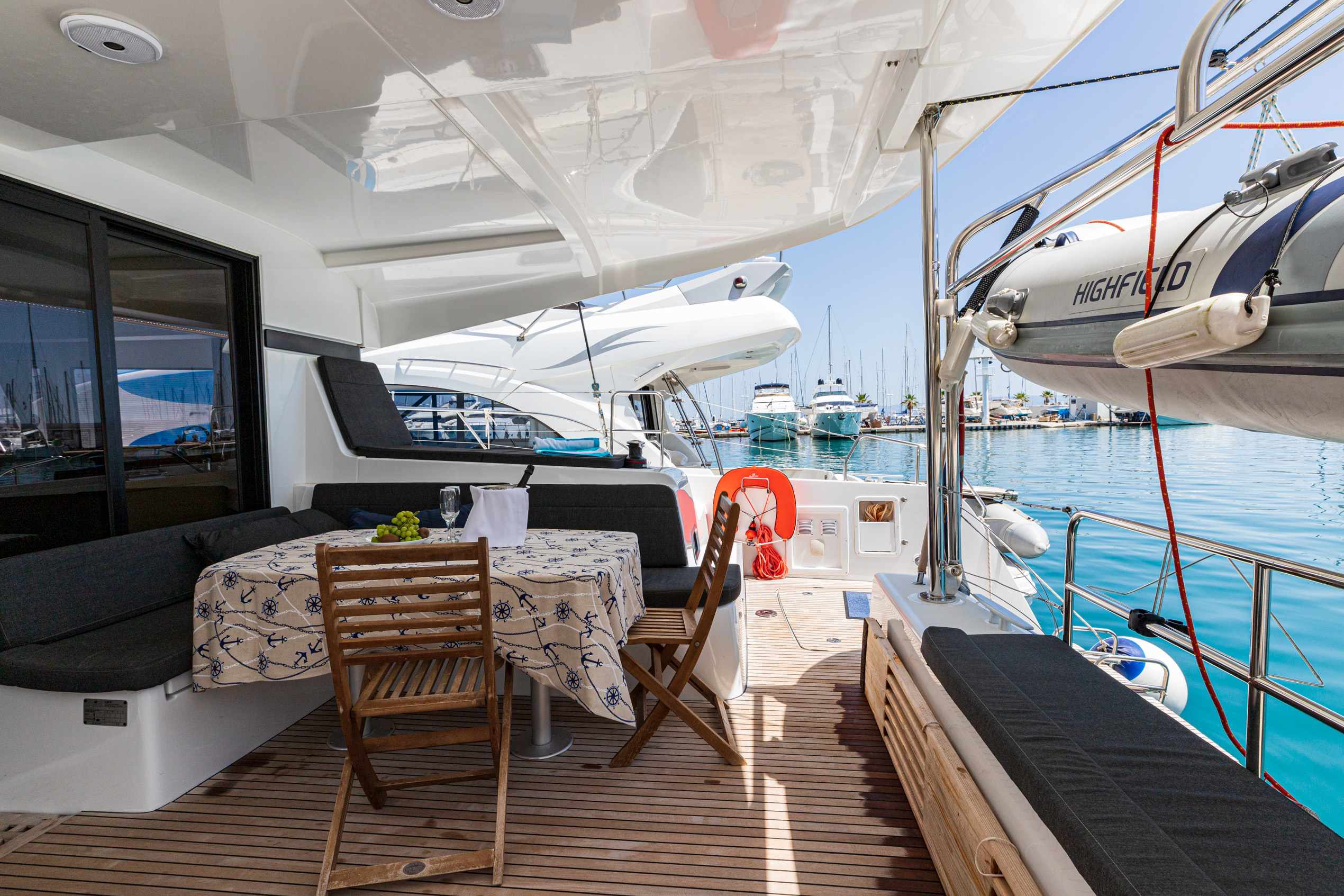 | Outside | 220 V-Landanschluss, Biminitop, Cockpitdusche, Cockpitkühlschrank, Cockpitpolster, elektr. Ankerwinsch, Solaranlage, Teak im Cockpit, Unterwasserbeleuchtung |