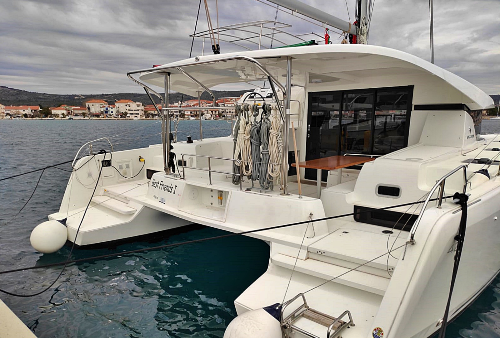 | Outside | 220 V-Landanschluss, Anker mit Kette, Badeleiter, Biminitop, Bootshaken, Cockpitdusche, Cockpitkühlschrank, Cockpitlautsprecher, Cockpitpolster, Cockpittisch, Deckpolster, Delta-Anker, elektr. Ankerwinsch, elektr. Winsch, Fender, Festmacherleinen, Gangway, Hardtop, Jambo Anker, Solaranlage, Sonnendeck, Wasserschlauch, Winschen |