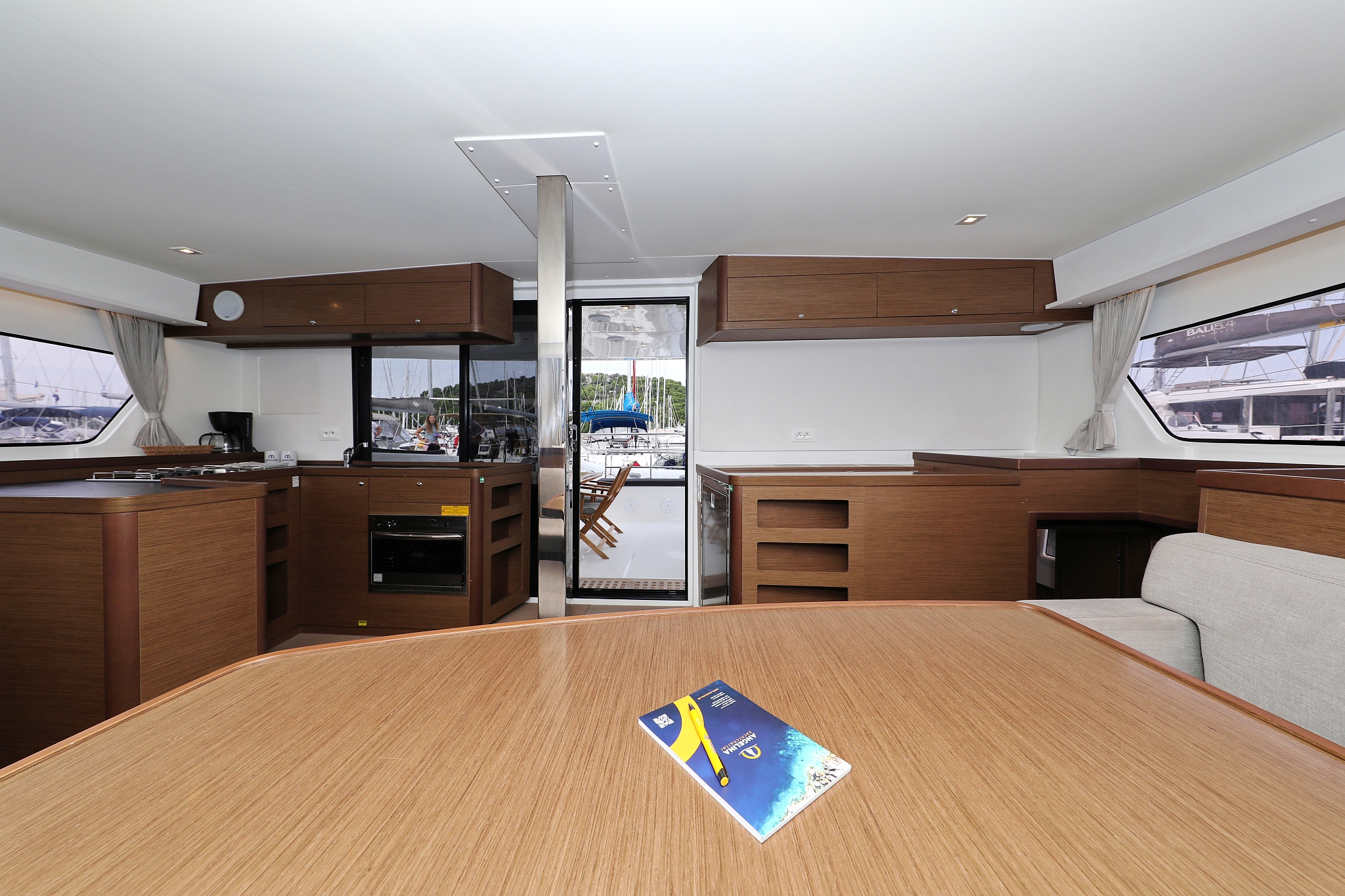 | Inside | 2. Kühlschrank, 220V Steckdosen, Backofen, Borduhr, Elektrische Filterkaffeemaschine, Fäkalientank, Gasherd, Heizung, Klimaanlage (Landstrom), Kühlschrank mit Gefrierfach, Ladegerät, Landstromkabel, Lautsprecher im Salon, Mokkakanne, Pantryausstattung, Radio, Spülbecken, USB Steckdosen in Salon und Kabinen, Warmwasser, Wasserkocher, WC (elektr.) |
