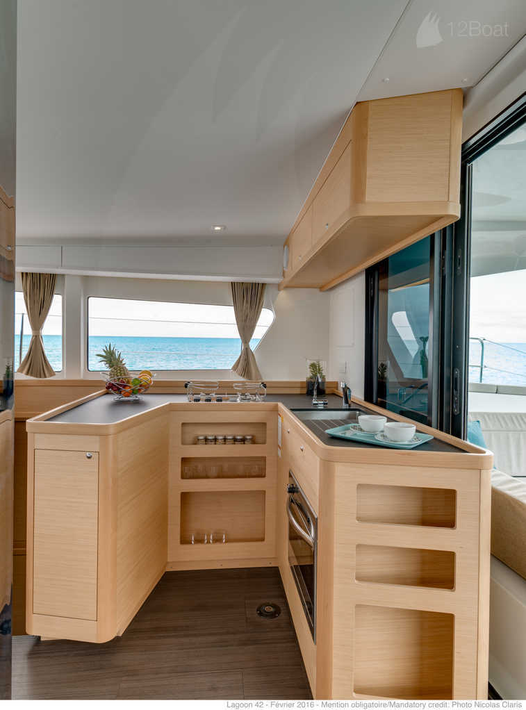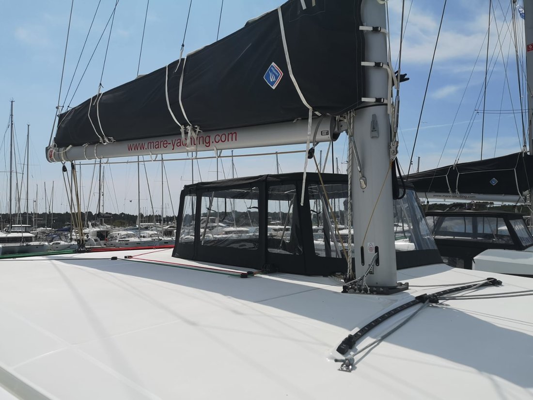 Borduhr, Heizung, Inverter 12V/220V, Kühlschrank, Ladegerät, Luftpumpe für Beiboot, Pantryausstattung, Radio, Salontisch absenkbar, USB Steckdose, Ventilatoren in Kabinen, Warmwasser, WC (elektr.) |