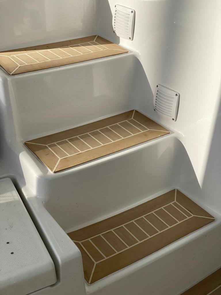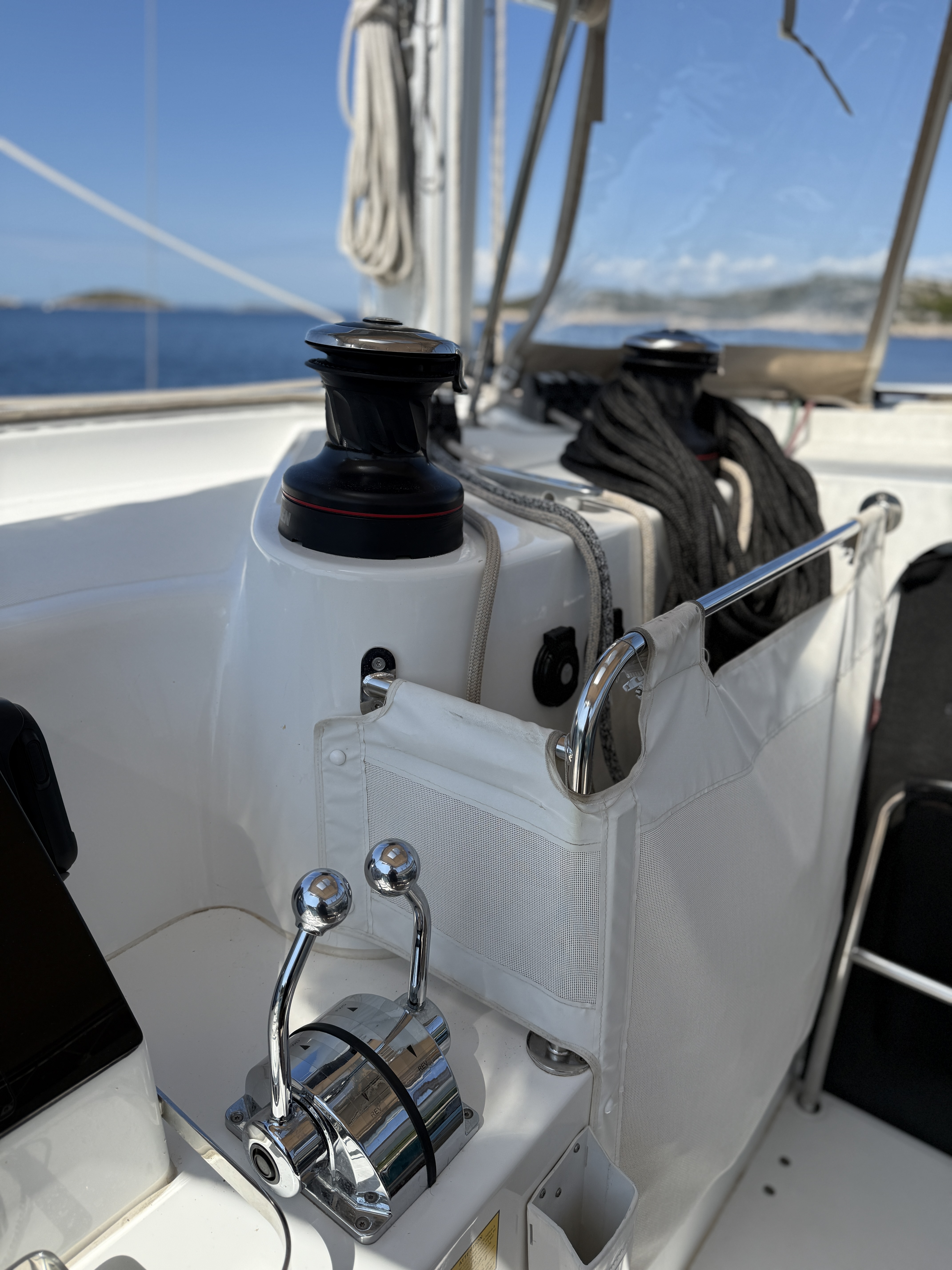 | Outside | 220 V-Landanschluss, Anker mit Kette, Biminitop, Bootshaken, Cockpitdusche, Cockpitlautsprecher, Cockpitpolster, Cockpittisch, Cockpitverdeck, Davits, elektr. Ankerwinsch, elektr. Genuawinsch, Fender, Fernsteuerung für elektr. Ankerwinsch, Festmacherleinen, Gangway, Kugelfender, Kunststoff-Eimer (Pütz), Sprayhood, Teak im Cockpit, Teakdeck, Wantenschneider, Wasserkanister , Wasserschlauch, Windex |
