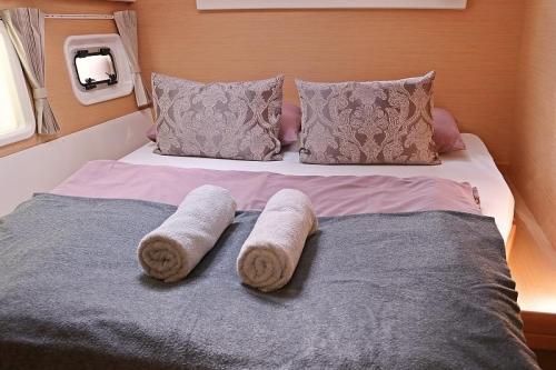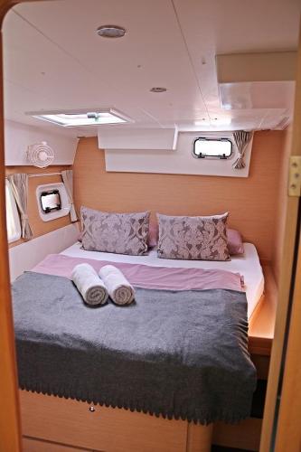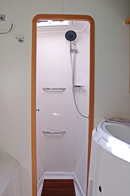 | Inside | Borduhr, Generator, Heizung, Inverter 12V/220V, Klimaanlage (ohne Landstrombedarf), Kühlschrank, Lattenrost, Mikrowelle, Nespresso-Maschine, Pantryausstattung, Radio mit CD und Bluetooth, Salontisch absenkbar, USB Steckdose, Ventilatoren in Salon und Kabinen, Warmwasser |