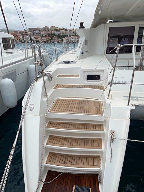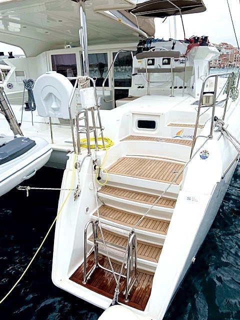 | Outside | 220 V-Landanschluss, Anker mit Kette, Biminitop, Bootshaken, Cockpitdusche, Cockpitkühlschrank, Cockpitlautsprecher, Cockpitpolster, Cockpittisch, Cockpitverdeck, Davits, Deckpolster, Dieselkanister , elektr. Ankerwinsch, elektr. Winsch, Fender, Festmacherleinen, Gangway, Kugelfender, Kunststoff-Eimer (Pütz), Solaranlage, Teak im Cockpit, Unterwasserbeleuchtung, Wantenschneider, Wasserschlauch, Windex |