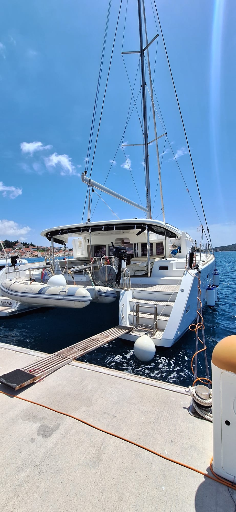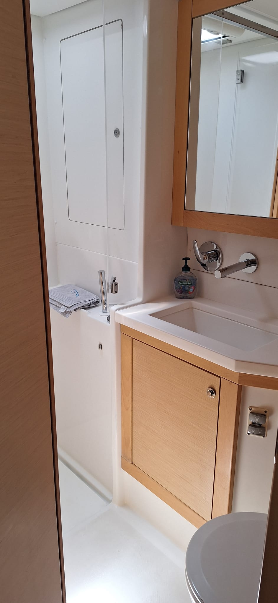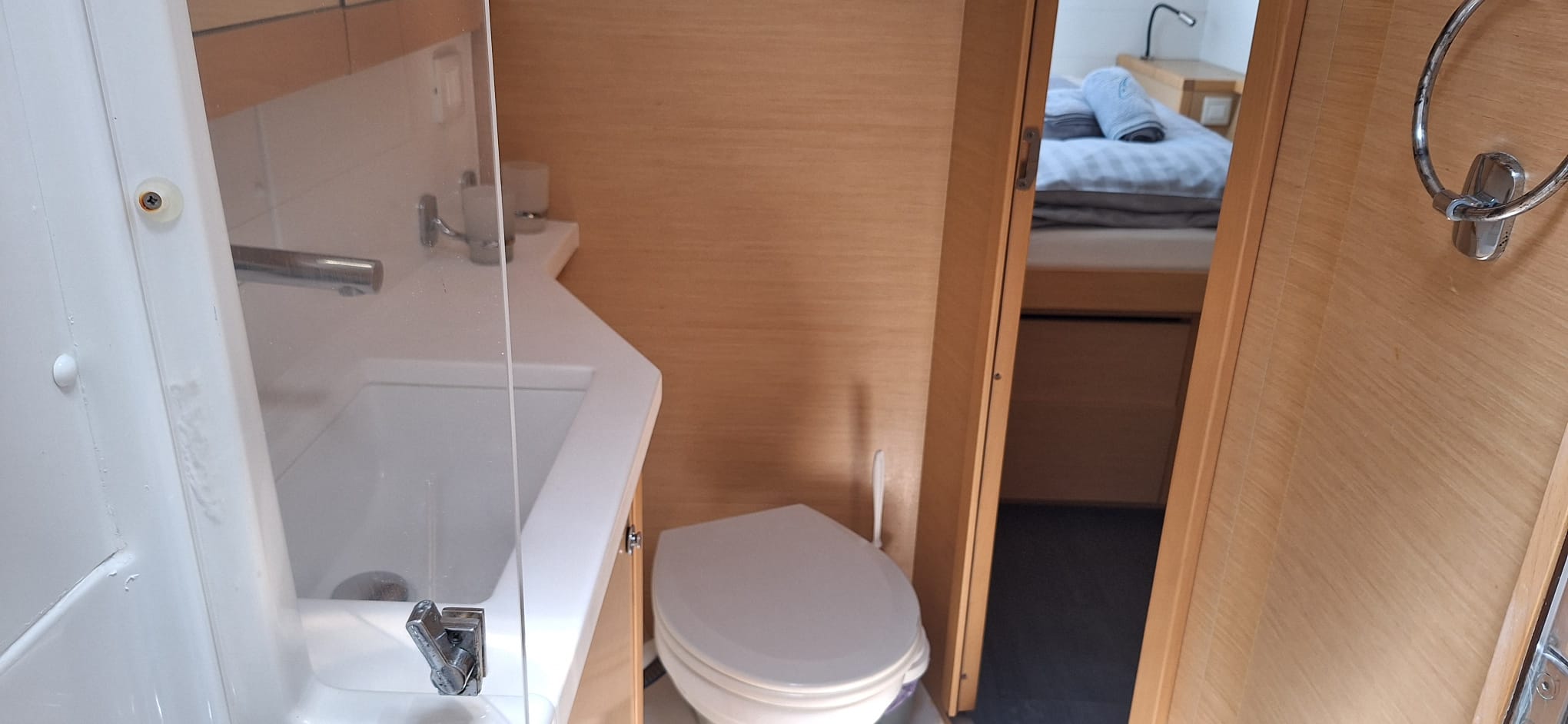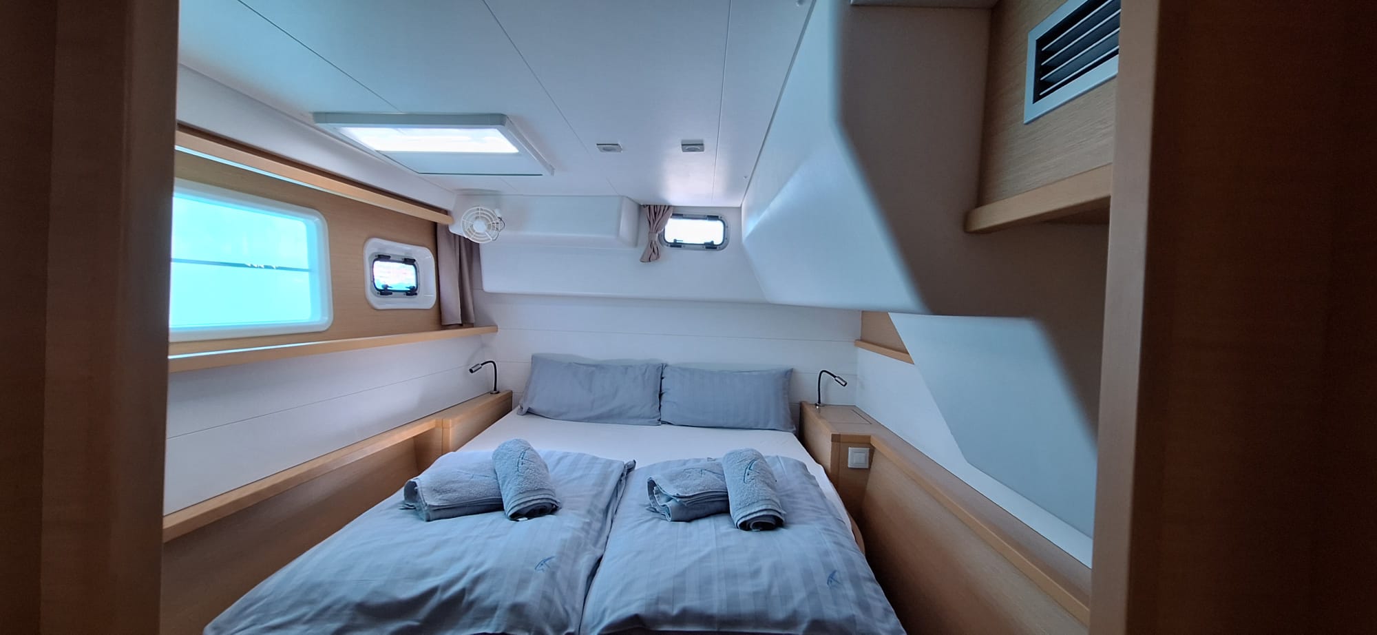 | Inside | Borduhr, DVD-Player, Fäkalientank, Gasherd mit Backofen, Gefrierschrank, Generator, Geschirrspüler, Inverter 12V/220V, Klimaanlage (ohne Landstrombedarf), Kühlschrank, Ladegerät, Lautsprecher im Salon, Mikrowelle, Radio mit MP3 , Spülbecken, TV, Ventilatoren in Kabinen, Warmwasser, Wasserkocher, Watermaker |