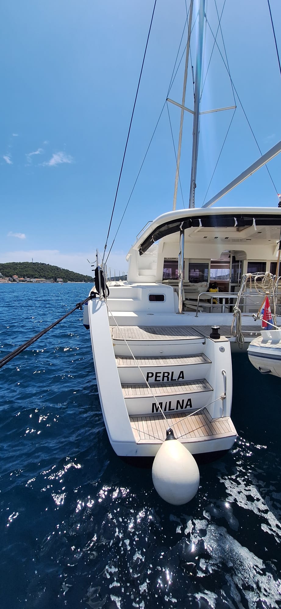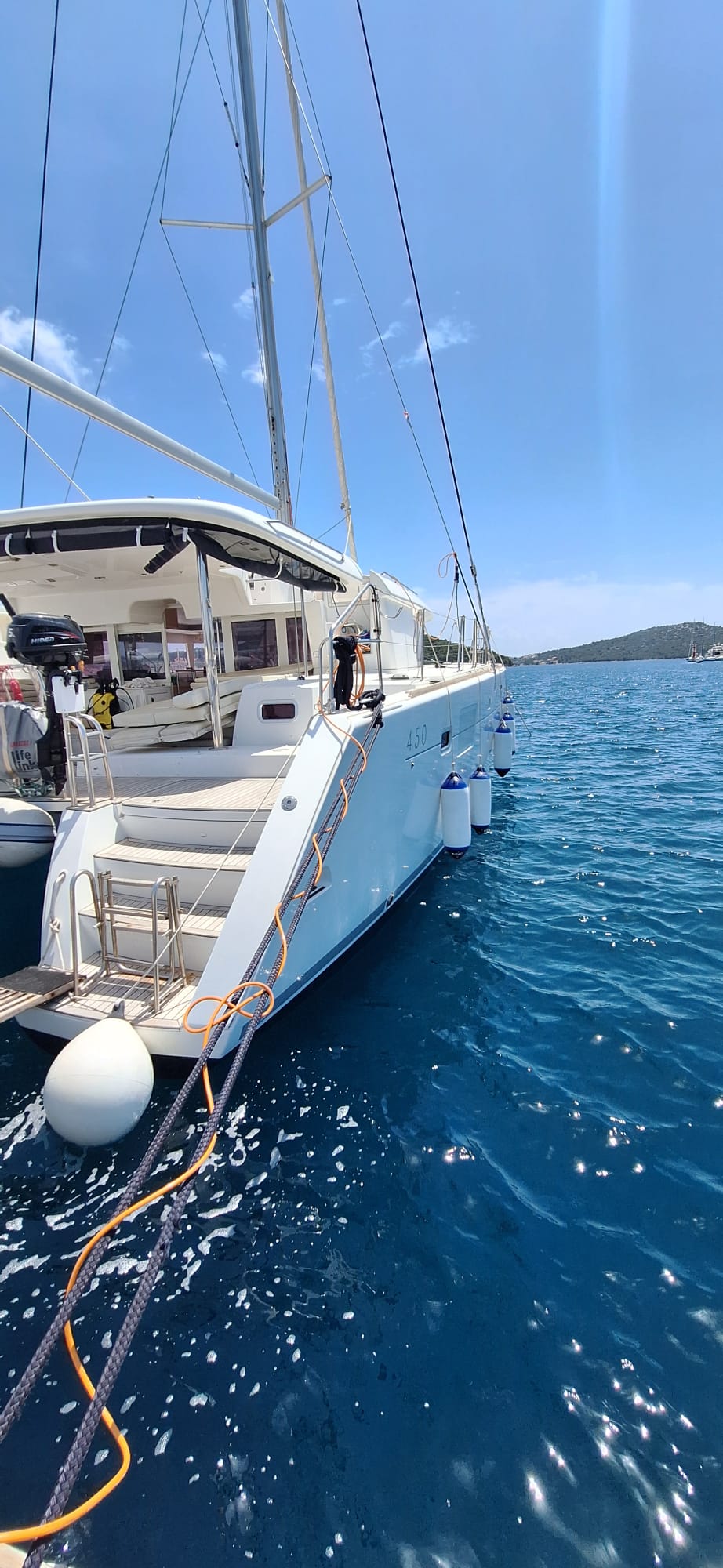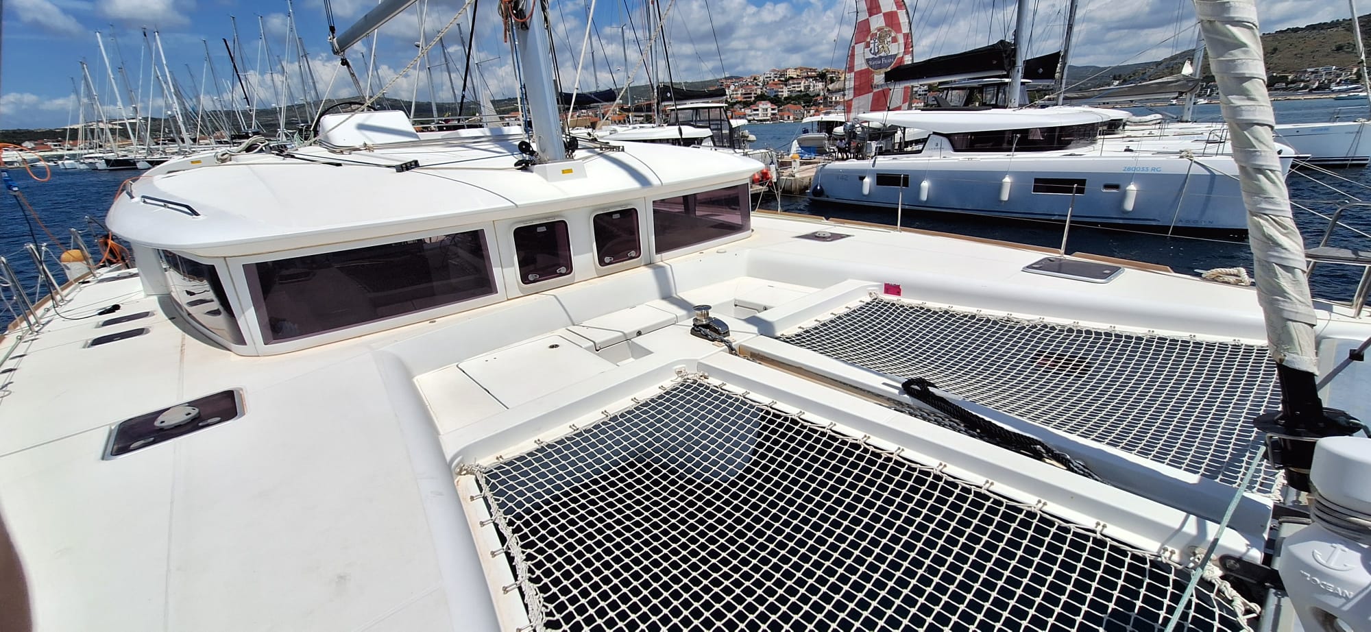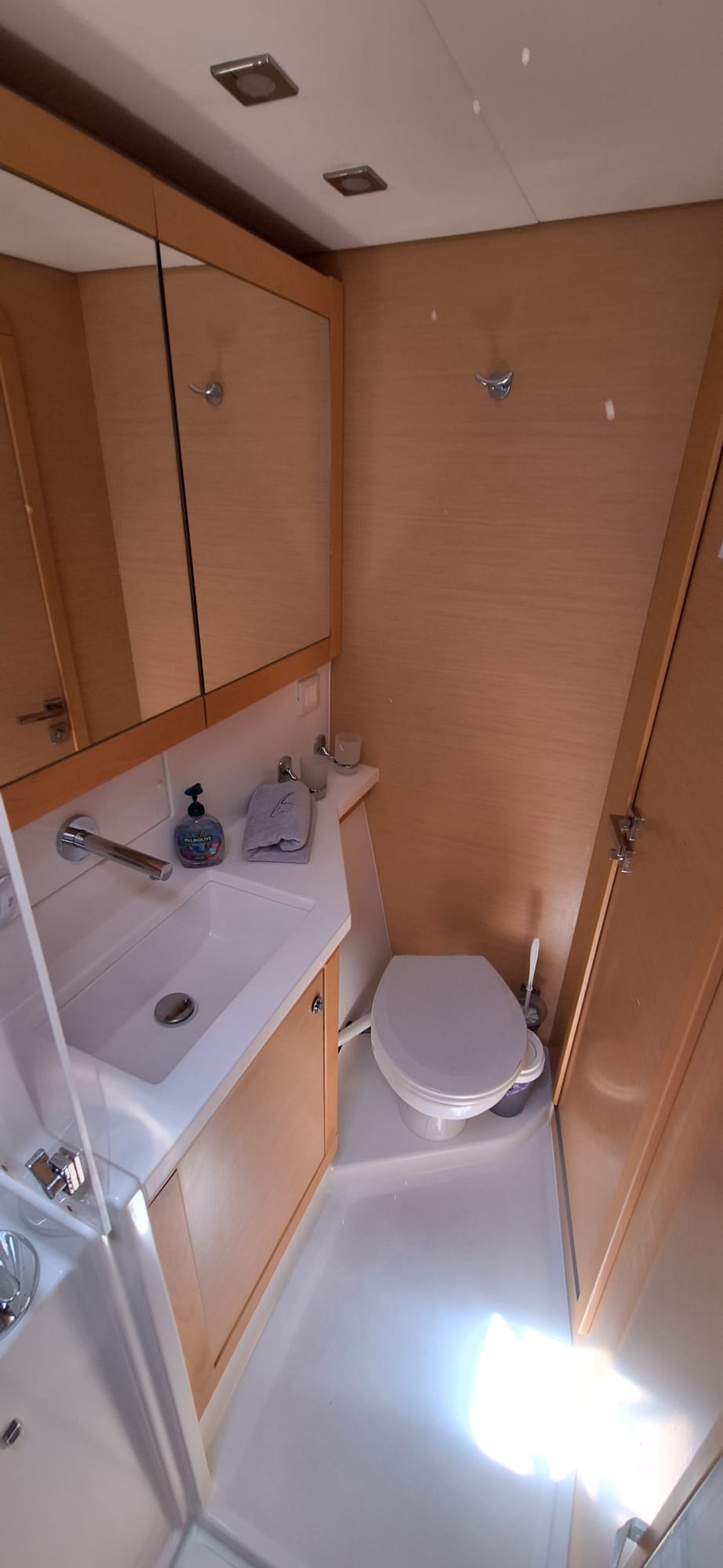| Inside | Borduhr, DVD-Player, Fäkalientank, Gasherd mit Backofen, Gefrierschrank, Generator, Geschirrspüler, Inverter 12V/220V, Klimaanlage (ohne Landstrombedarf), Kühlschrank, Ladegerät, Lautsprecher im Salon, Mikrowelle, Radio mit MP3 , Spülbecken, TV, Ventilatoren in Kabinen, Warmwasser, Wasserkocher, Watermaker |