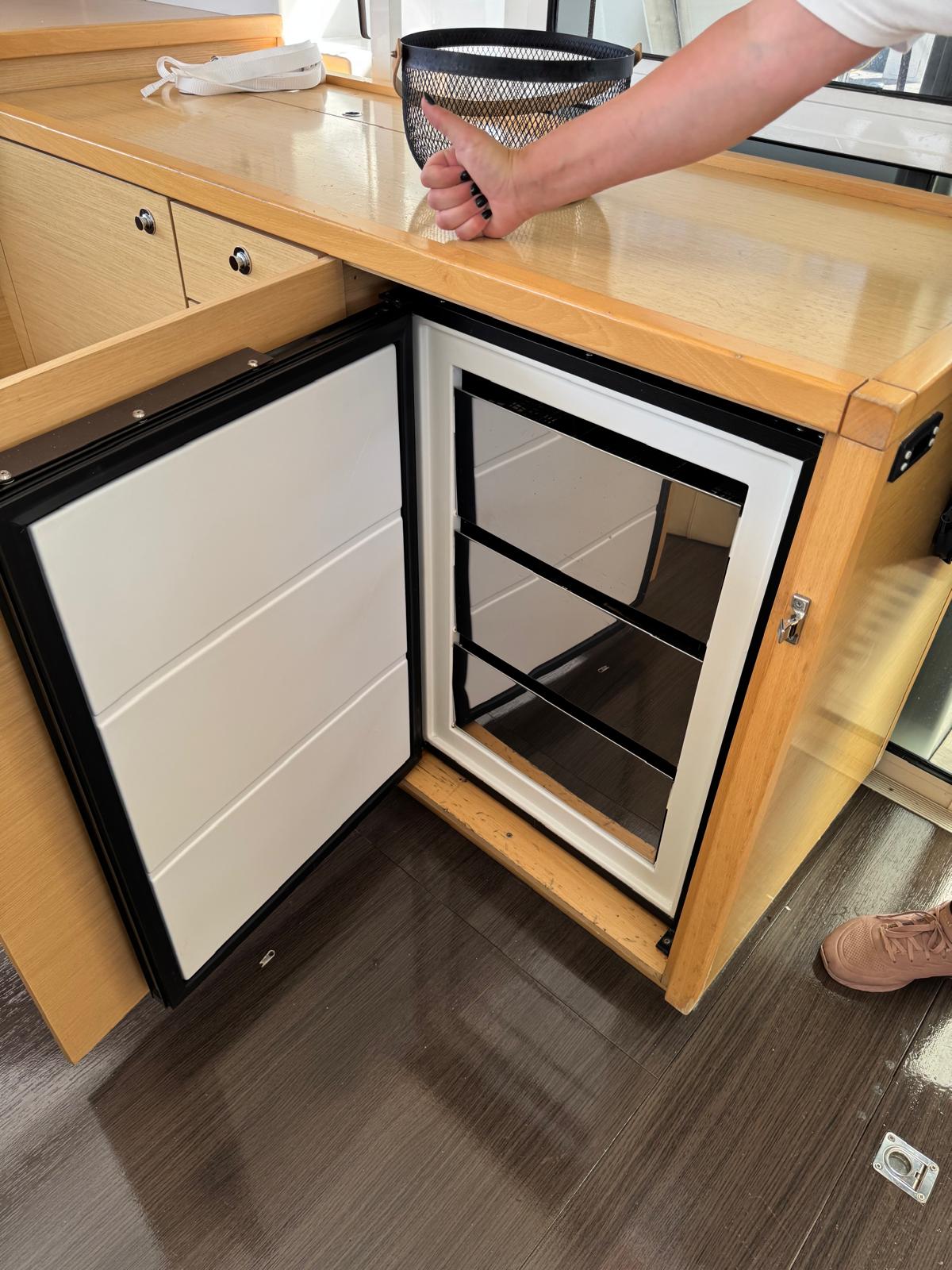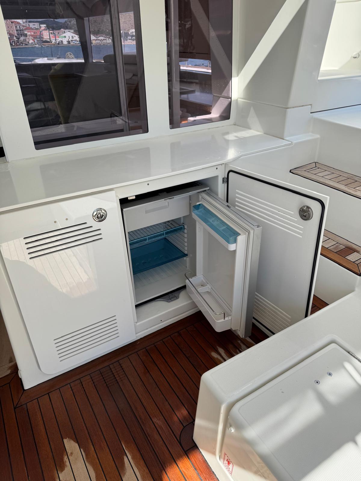 | Inside | Backofen, Borduhr, DVD-Player, Fäkalientank, Gasherd, Gefrierschrank, Generator, Geschirrspüler, Inverter 12V/220V, Klimaanlage (ohne Landstrombedarf), Kühlschrank, Ladegerät, Lautsprecher im Salon, Mikrowelle, Radio mit MP3 , Spülbecken, TV, Ventilatoren in Kabinen, Warmwasser, Wasserkocher |