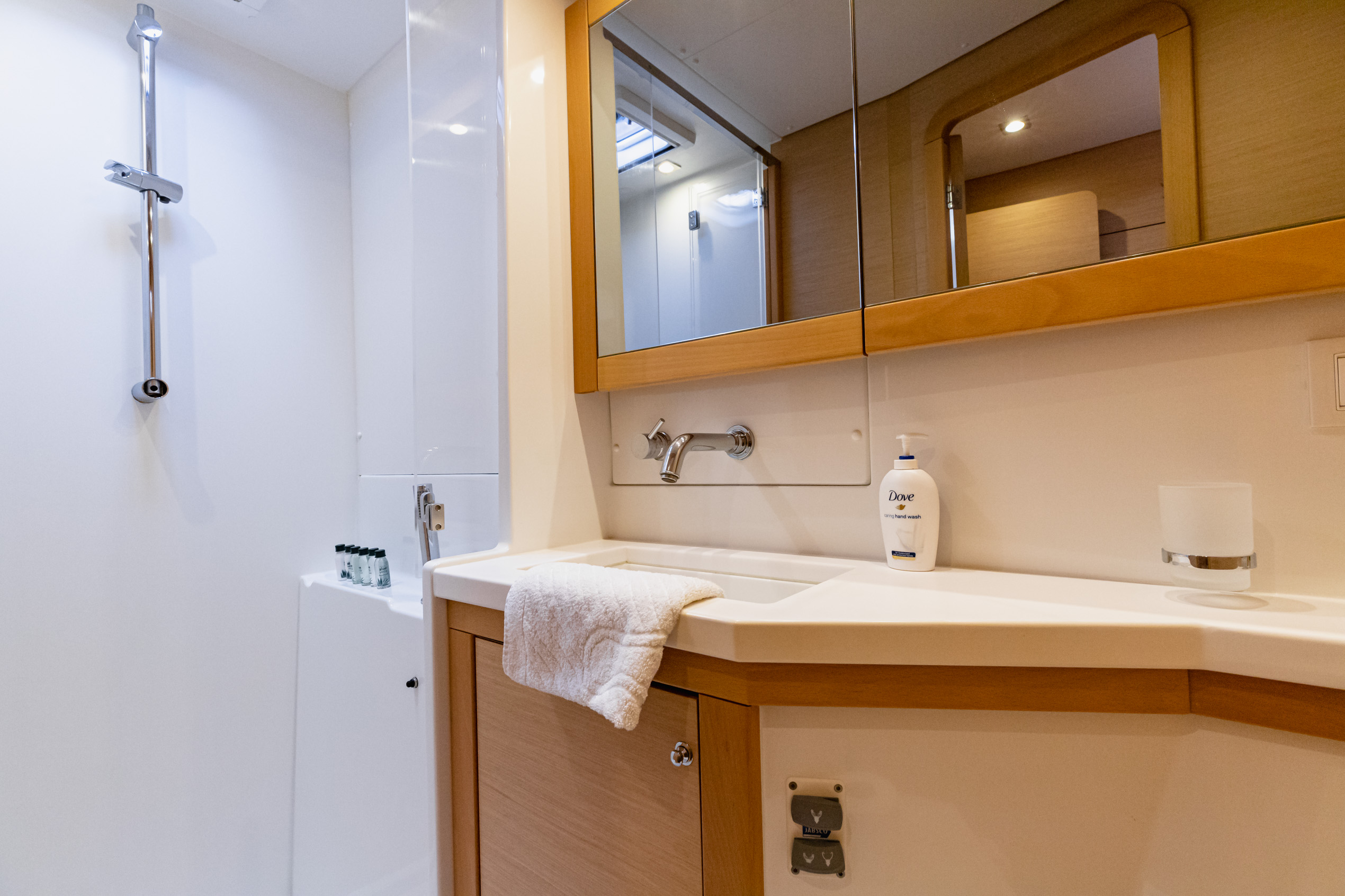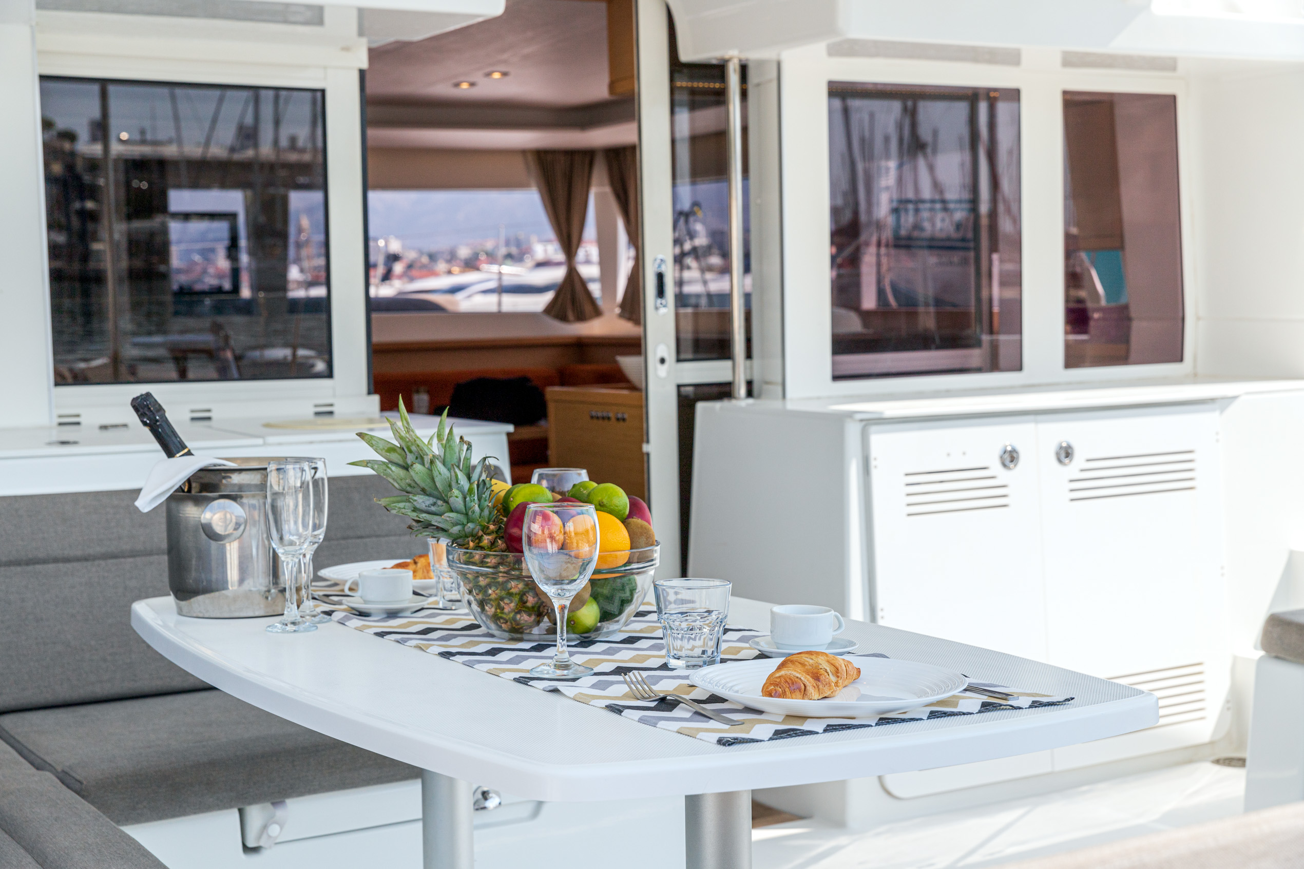 | Outside | 220 V-Landanschluss, Biminitop, Cockpitdusche, Cockpitlautsprecher, Cockpitpolster, Cockpittisch, elektr. Ankerwinsch, Gangway, Sprayhood |