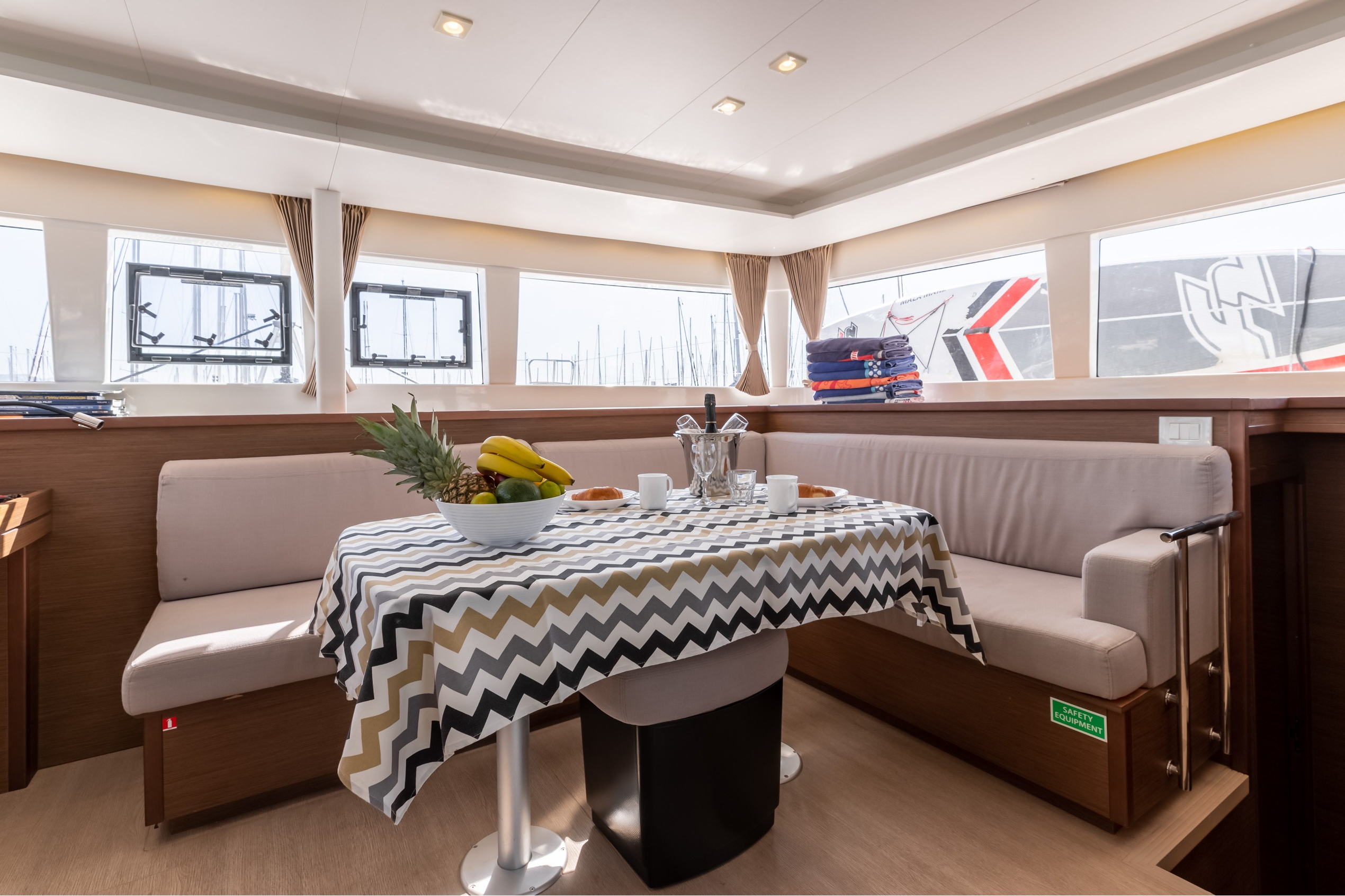 | Safety | Autopilot, elektr. Bilgepumpe, Feststoffschwimmwesten, Rettungsinsel, Sicherheitsausrüstung, UKW-Funk |