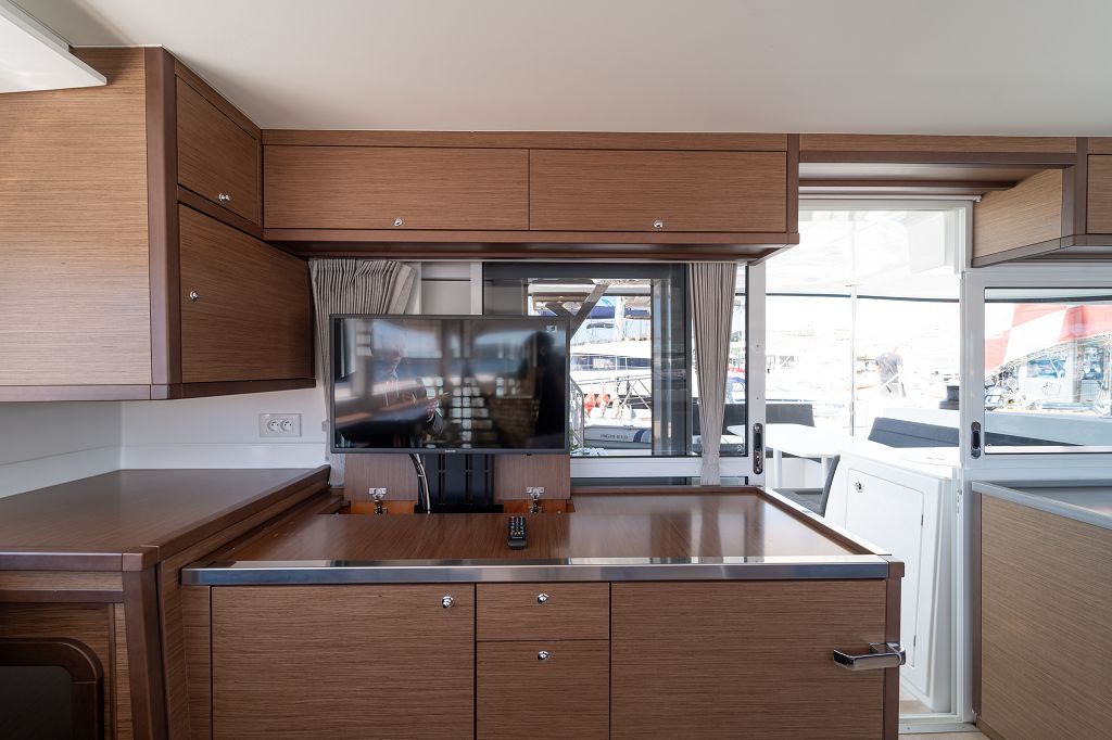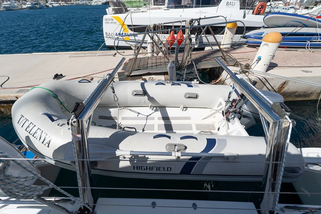 | Outside | 12 V-Anschluss, 220 V-Landanschluss, Anker mit Kette, Ankerwinsch, Badeleiter, Badeplattform, Biminitop, Bootshaken, Cockpitdusche, Cockpitlautsprecher, Cockpitpolster, Cockpittisch, Davits, Dieselkanister , elektr. Ankerwinsch, elektr. Winsch, Fender, Festmacherleinen, Gangway, Kugelfender, Kunststoff-Eimer (Pütz), Sonnensegel, Wasserkanister , Wasserschlauch, Windex, Winschen |