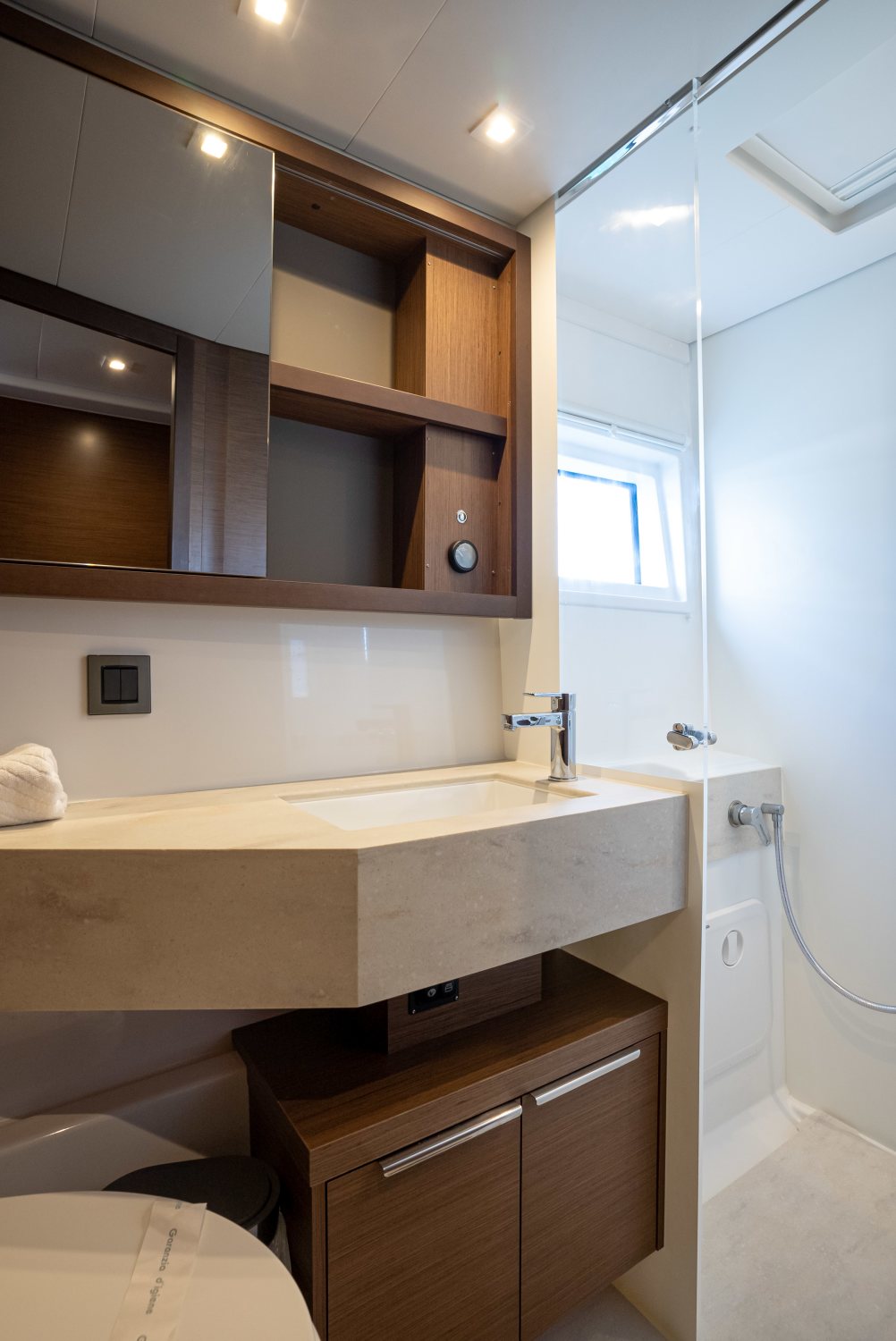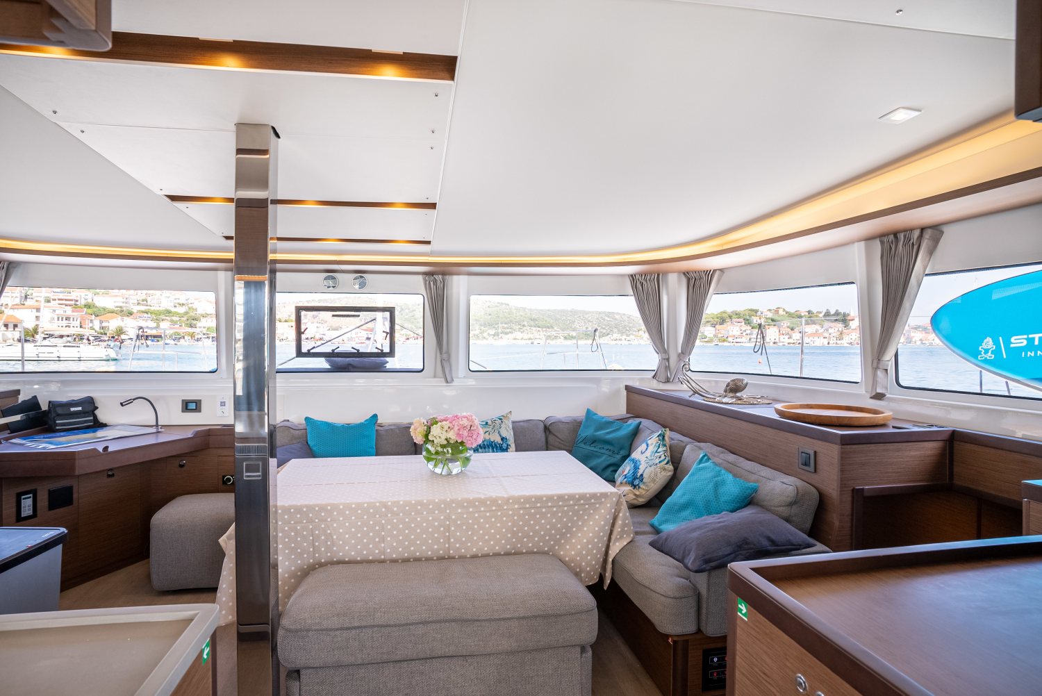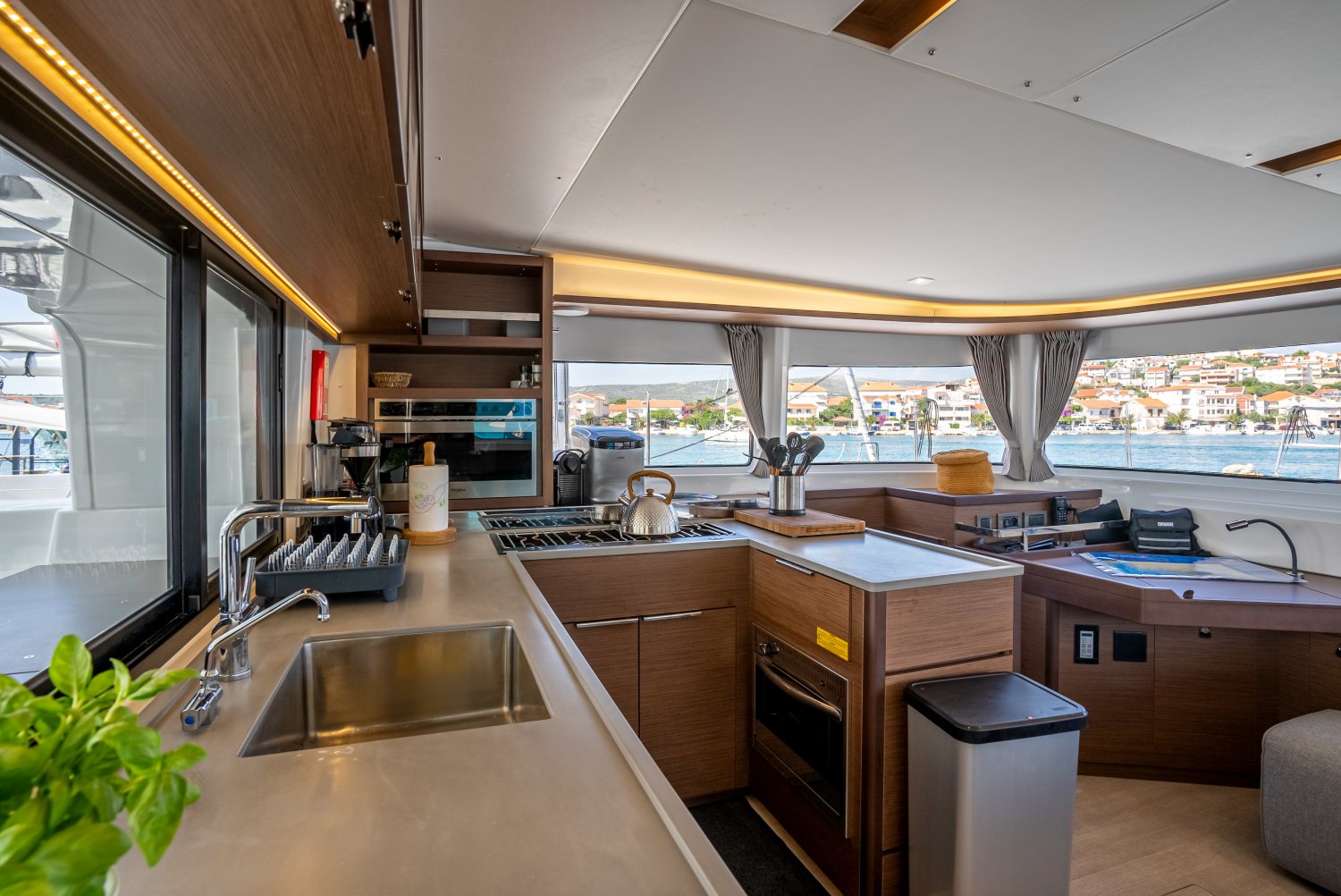 | Inside | Backofen, CD-Player, Eiswürfelmaschine, Fäkalientank, Fön, Gasherd, Gefrierschrank, Generator, Heizung, Kaffeemaschine, Klimaanlage (ohne Landstrombedarf), Kühlschrank, Ladegerät, Mikrowelle, Pantryausstattung, Smart-TV, Warmwasser, Watermaker, WC (elektr.) |