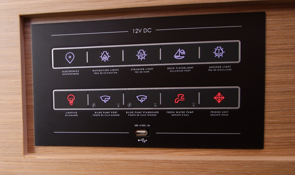 | Inside | Borduhr, Gefrierschrank, Generator, Geschirrspüler, Heizung, Inverter 12V/220V, Kaffeemaschine, Klimaanlage (ohne Landstrombedarf), Kühlschrank, Ladegerät, Luftpumpe für Beiboot, Pantryausstattung, Radio, USB Steckdose, Ventilatoren in Kabinen, Warmwasser, WC (elektr.) |