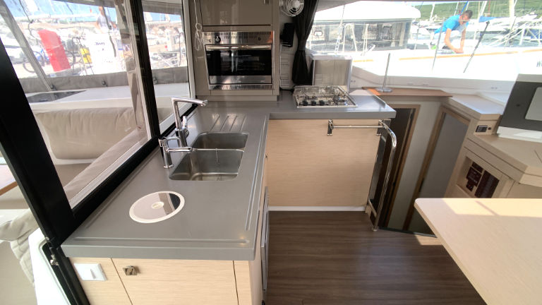 | Inside | 220V Steckdosen, Backofen, Borduhr, Deckenleuchten, Fäkalientank, Gasherd, Generator, Geschirrspüler, Heizlüfter, Heizung, Inverter 12V/220V, Kühlschrank, Landstromkabel, Lautsprecher im Salon, Pantryausstattung, Radio, Safe für Wertsachen, Salontisch absenkbar, TV + DVD, Ventilatoren in Salon und Kabinen, Warmwasser, Waschmaschine, WC (elektr.) |