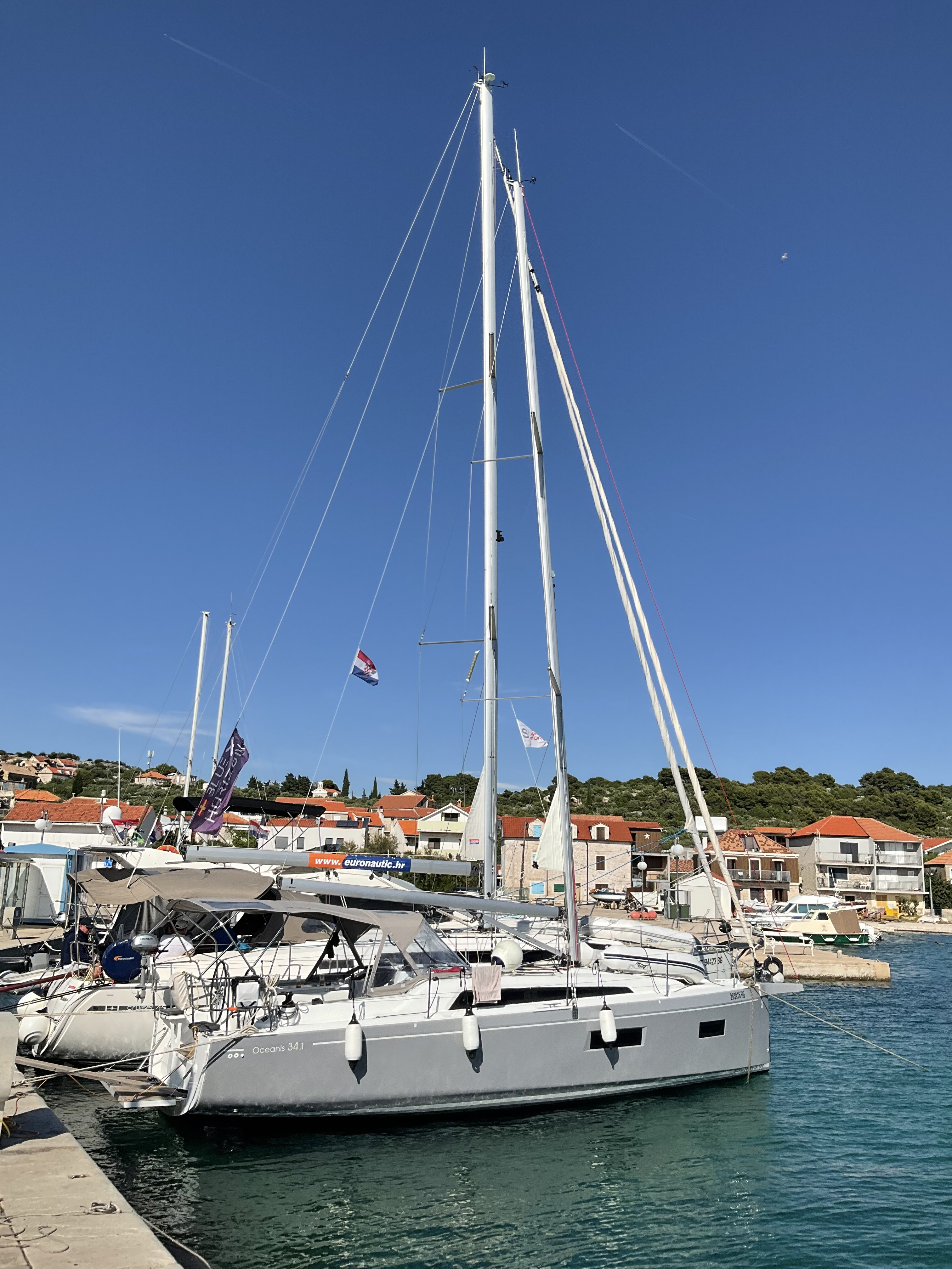 | Navigation | Fernglas, GPS mit Kartenplotter im Cockpit, Hafenhandbücher, Navigationsbesteck, Seekarten, Tridata (Log, Echolot, Windm.) |