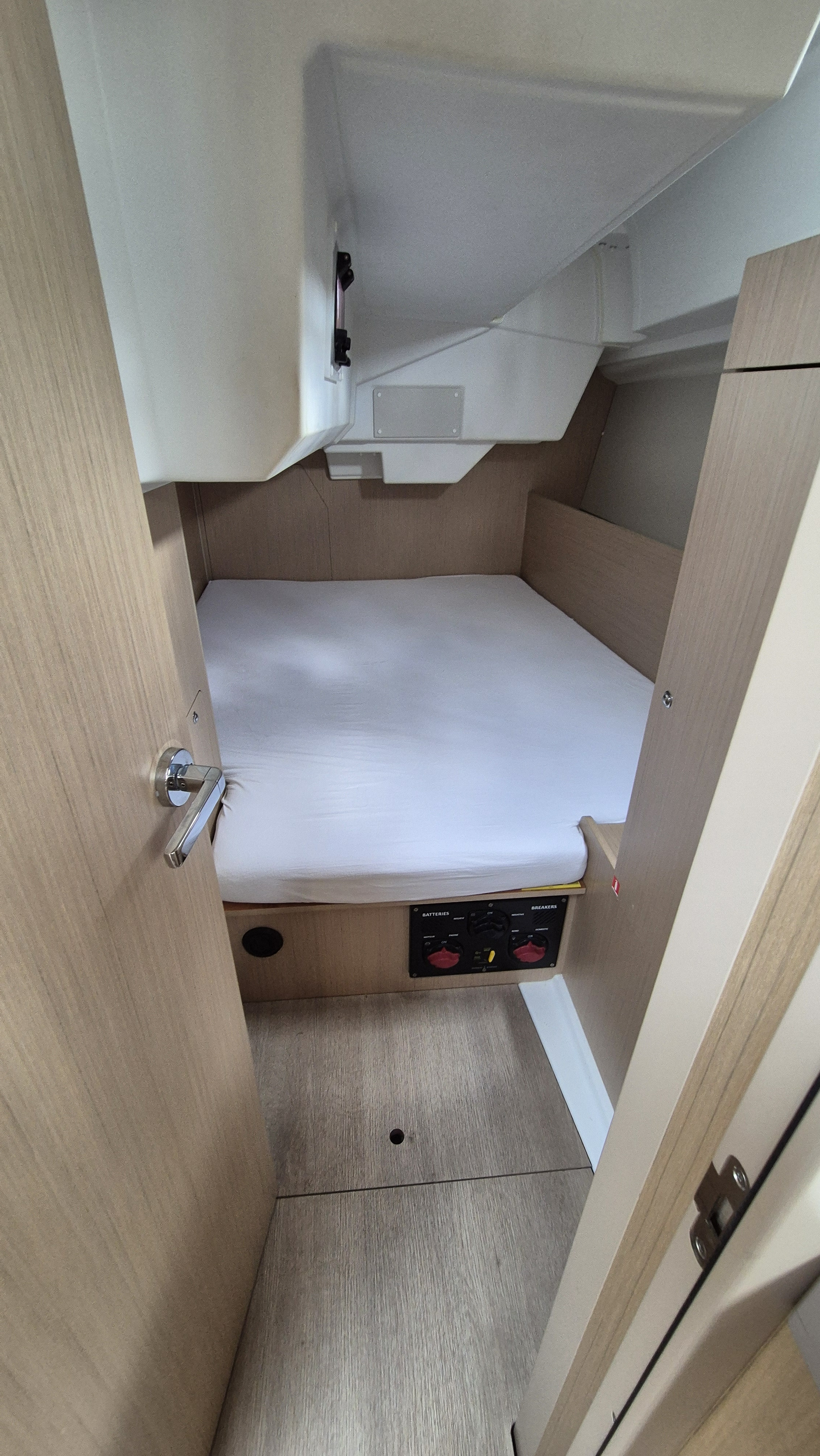 | Safety | AIS Empfänger, Ankerlicht, Automatikwesten, Autopilot, Bootmesser, Bordapotheke, Bordwerkzeug, Bugstrahlruder, elektr. Bilgepumpe, Feuerlöscher, Flaggen, Lifebelts, Motor-Ersatzteile, Navigationslichter, Nebelhorn, Notpinne, Notsignale, Radarreflektor, Rettungsinsel, Taschenlampe, UKW-Funk, Zweitanker |