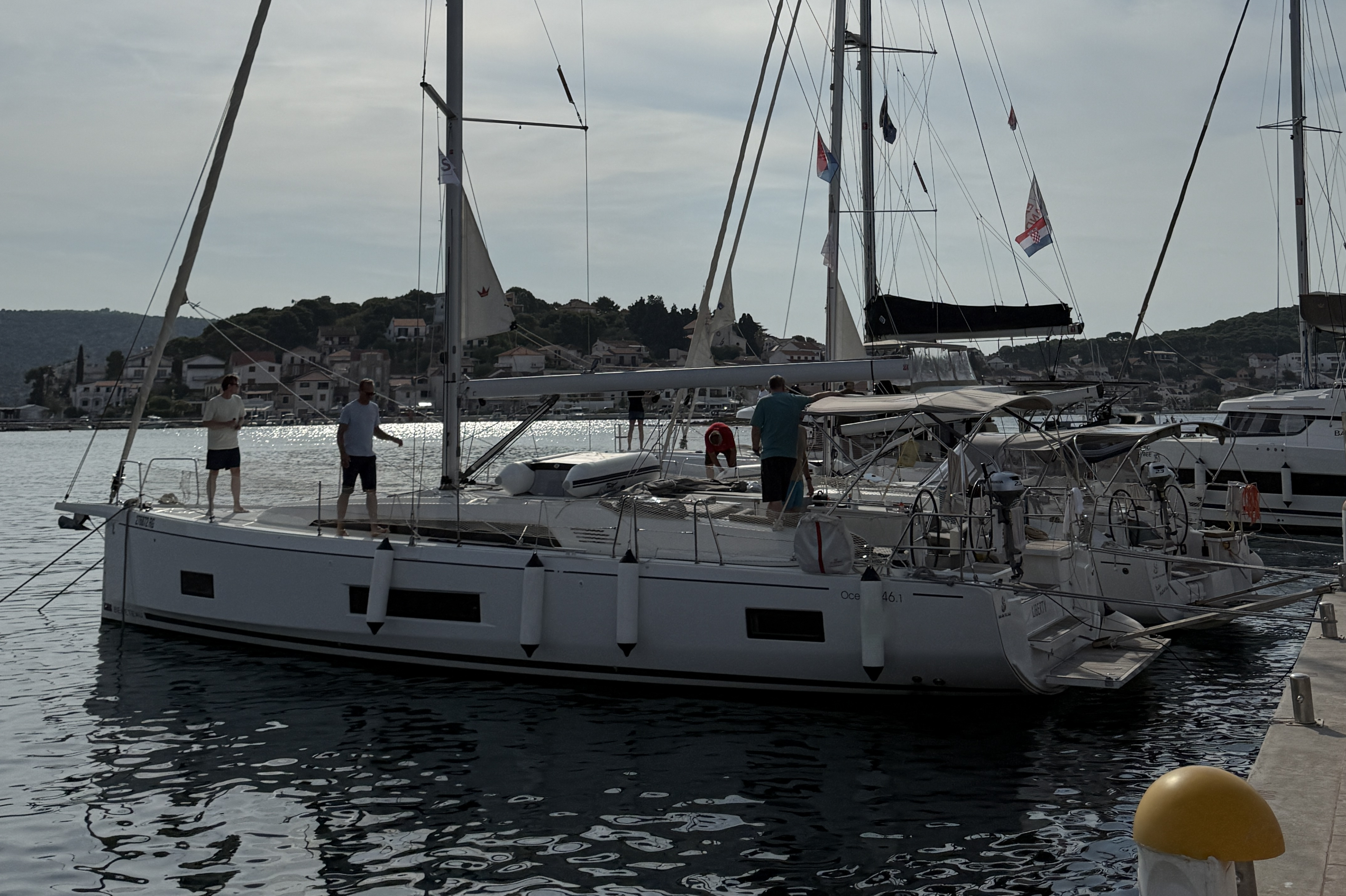 | Safety | AIS Empfänger, Autopilot, Blitzboje, Bootsmannstuhl, Bordapotheke, Bordwerkzeug, Bugstrahlruder, Epirb, Feststoffschwimmwesten, Feuerlöscher, Lifebelts, Nebelhorn, Notsignale, Radarreflektor, Reparaturset für Beiboot, Rettungsinsel, Suchscheinwerfer, Taschenlampe, UKW-Funk, Zweitanker |