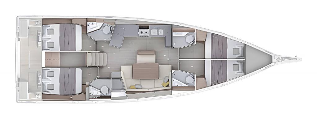 | Outside | 12 V-Anschluss, Anker mit Kette, Badeleiter, Badeplattform, Biminitop, Bootshaken, Cockpitdusche, Cockpitpolster, Deckbürste, Dieselkanister , elektr. Ankerwinsch, elektr. Winsch, Fallwinschen, Fender, Festmacherleinen, Gangway, Seereling, Solaranlage, Sprayhood, Teak im Cockpit, Wantenschneider, Windex |