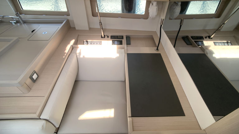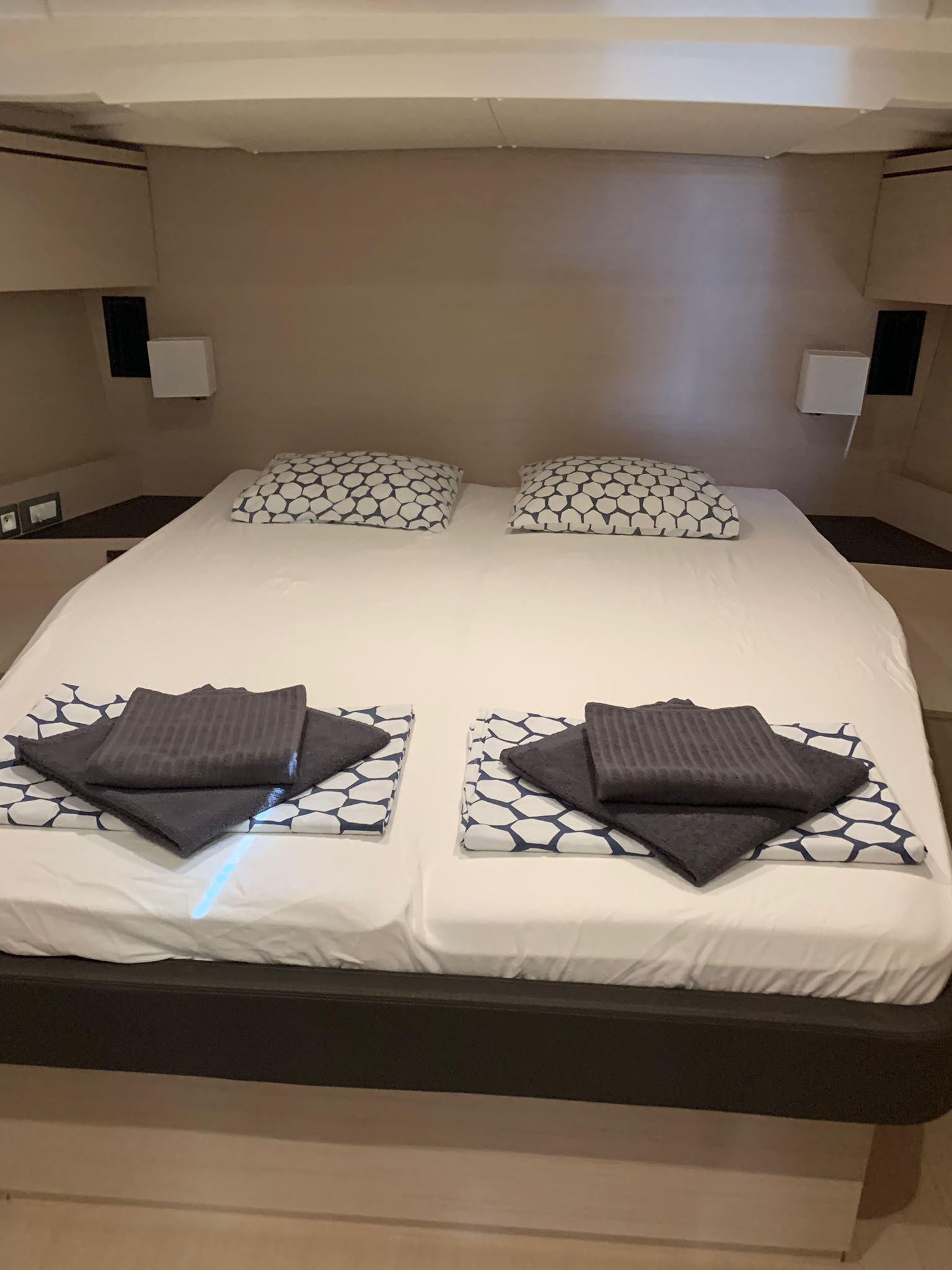 | Inside | Druckwasser, Frischwasserpumpe, Generator, Geschirrspüler, Heizung, Hi-Fi System, Inverter 12V/220V, Kaffeemaschine, Klimaanlage (ohne Landstrombedarf), Kühlbox, Kühlschrank, Landstromkabel, Lautsprecher im Salon, LED-Innenleuchten, Moskitonetze, Safe für Wertsachen, Salontisch absenkbar, Trockner, TV + DVD, USB Steckdose, Ventilatoren in Kabinen, Warmwasser, Waschmaschine, WC (elektr.), Weinkühlschrank |