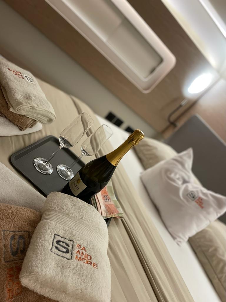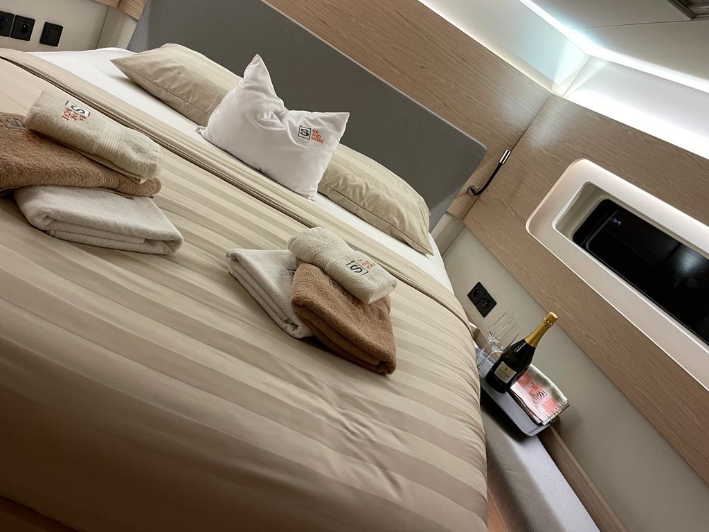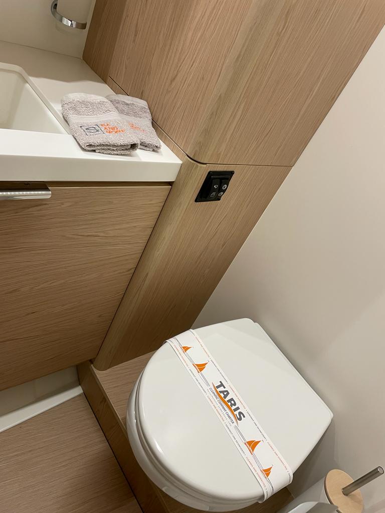 | Inside | Generator, Geschirrspüler, Heizung, Inverter 12V/220V, Klimaanlage (ohne Landstrombedarf), Kühlschrank, Ladegerät, Luftpumpe für Beiboot, Nespresso-Maschine, Pantryausstattung, Radio, Safe für Wertsachen, Salontisch absenkbar, USB Steckdose, Warmwasser, WC (elektr.) |