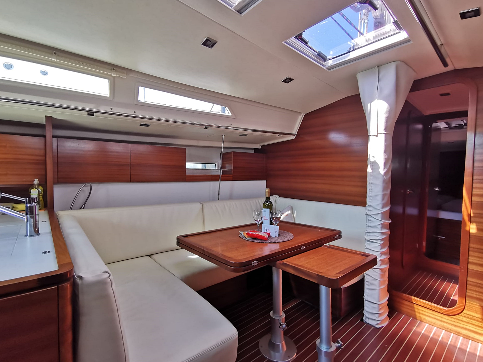 | Inside | Borduhr, Heizung, Inverter 12V/220V, Kühlschrank, Ladegerät, Luftpumpe für Beiboot, Nespresso-Maschine, Pantryausstattung, Radio, Salontisch absenkbar, USB Steckdose, Warmwasser |