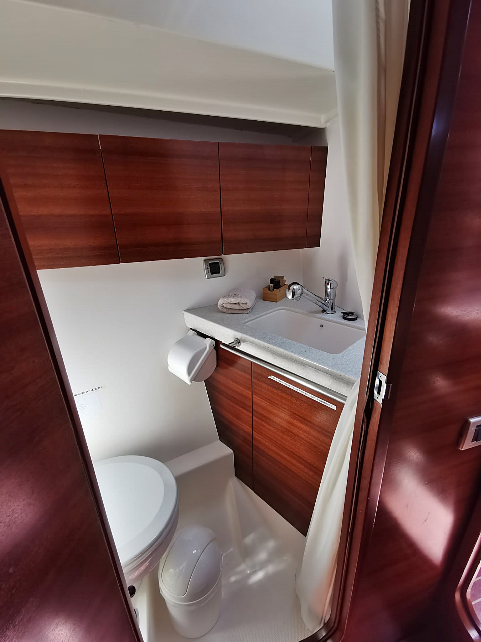 | Safety | AIS Empfänger, Autopilot, Blitzboje, Bootsmannstuhl, Bordapotheke, Bordwerkzeug, Bugstrahlruder, Feststoffschwimmwesten, Feuerlöscher, Lifebelts, Nebelhorn, Notsignale, Radarreflektor, Reparaturset für Beiboot, Rettungsinsel, Suchscheinwerfer, Taschenlampe, UKW-Funk, Zweitanker |