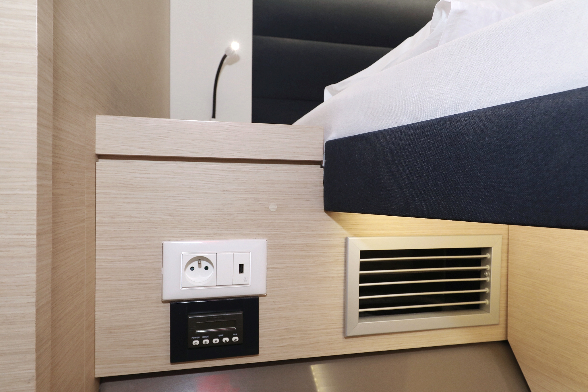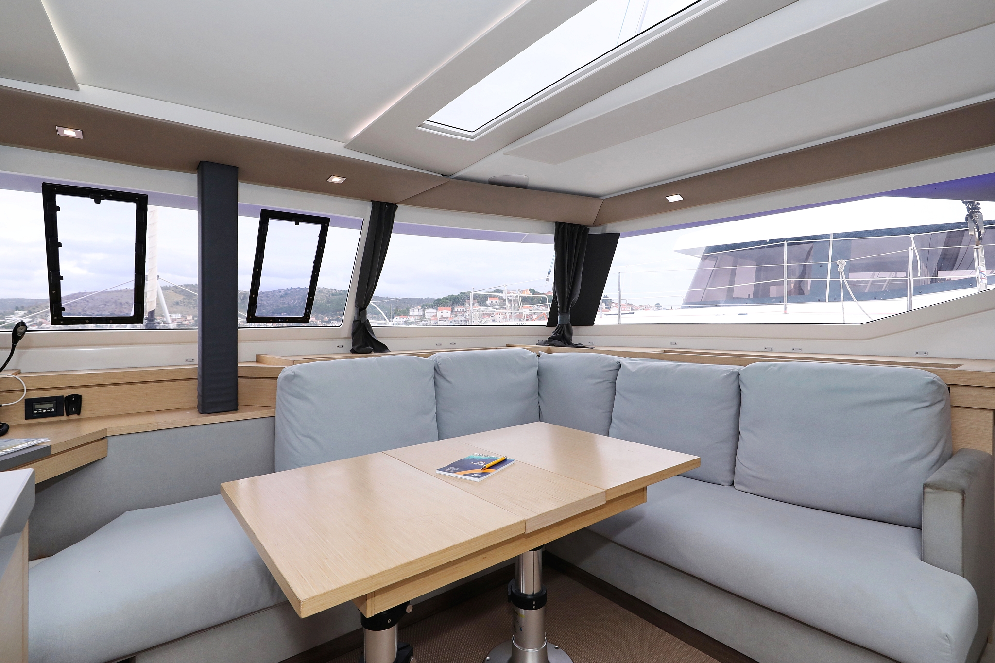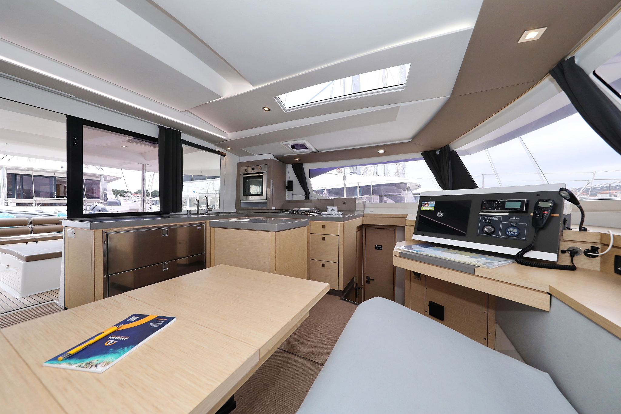 | Inside | 220V Steckdosen, Backofen, Borduhr, Elektrische Filterkaffeemaschine, Gasherd, Gefrierschrank, Generator, Heizung, Hi-Fi System, Inverter 12V/220V, Klimaanlage (ohne Landstrombedarf), Kühlschrank, Ladegerät, Landstromkabel, LED-Innenleuchten, Mokkakanne, Pantryausstattung, Radio mit CD/USB/MP3/Aux-In/Bluetooth, Spülbecken, TV, USB Steckdosen in Salon und Kabinen, Warmwasser, Wasserkocher, WC (elektr.) |