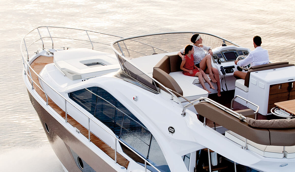 | Outside | 12 V-Anschluss, 220 V-Landanschluss, Anker mit Kette, Badeleiter, Badeplattform (hydr.), Biminitop, Cockpitdusche, Cockpitlautsprecher, Cockpittisch, elektr. Ankerwinsch, Flybridge, Gangway, Grill, Sonnensegel, Teakdeck |