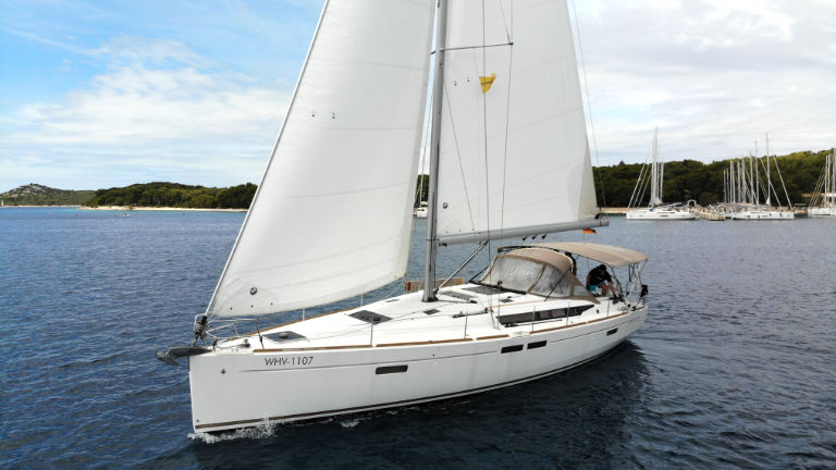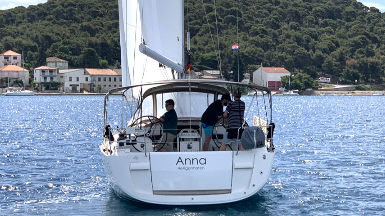 | Navigation | Barometer, Fernglas, GPS mit Kartenplotter im Cockpit, Hafenhandbücher, Handpeilkompass, Kompass, Navigationsbesteck, Seekarten, Tridata (Log, Echolot, Windm.), Windmesser |