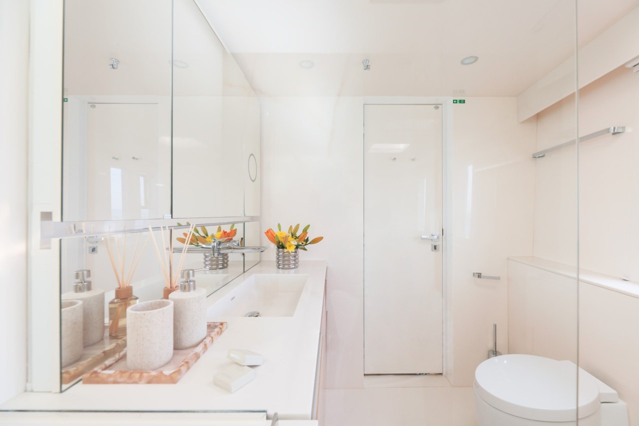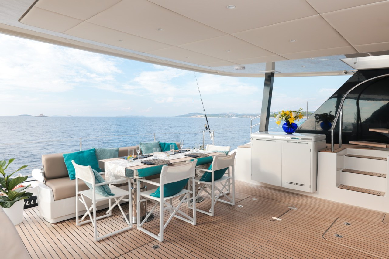 | Inside | Backofen, Bügelbrett, Bügeleisen, Eiswürfelmaschine, Fön, Gefrierschrank, Generator, Geschirrspüler, Heizung, Klimaanlage (ohne Landstrombedarf), Kühlbox, Kühlschrank, Lautsprecher im Salon, Trichter, TV, USB Steckdose, Waschmaschine, Watermaker, WC (elektr.) |