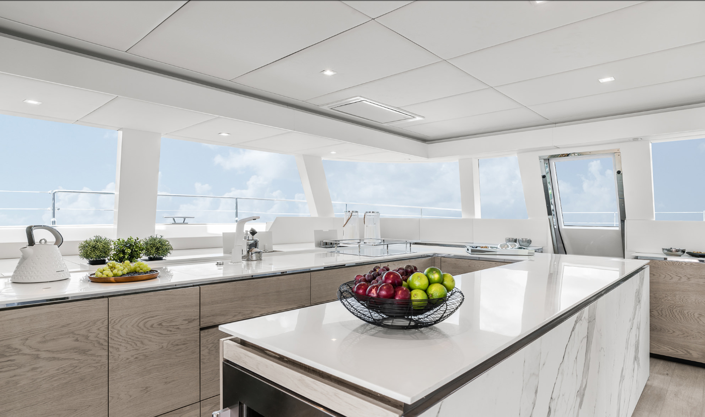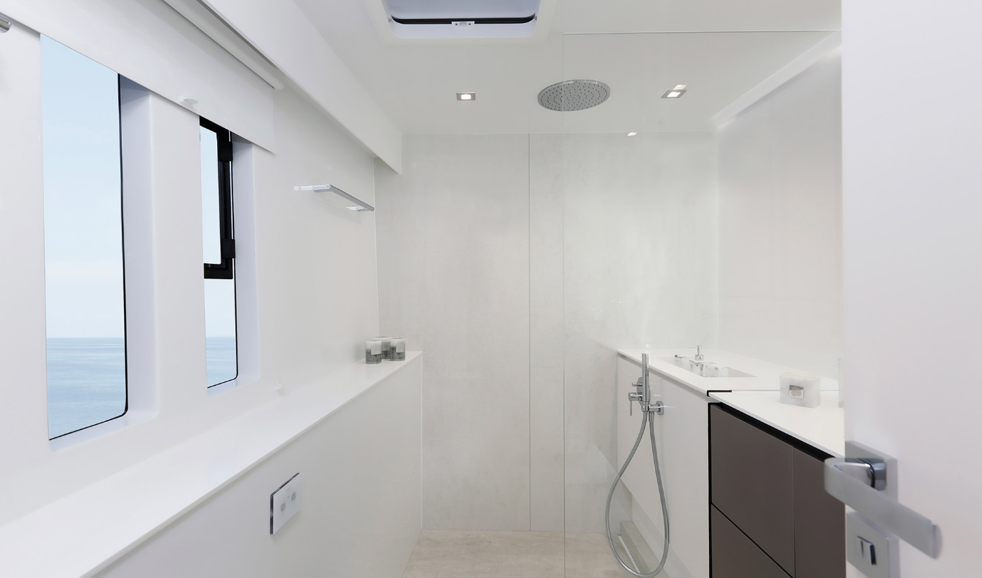 | Inside | Backofen, Bügeleisen, Eiswürfelmaschine, Fön, Generator, Geschirrspüler, Heizung, Hi-Fi System, Klimaanlage (ohne Landstrombedarf), Lautsprecher im Salon, TV, USB Steckdose, Waschmaschine, Watermaker, WC (elektr.) |