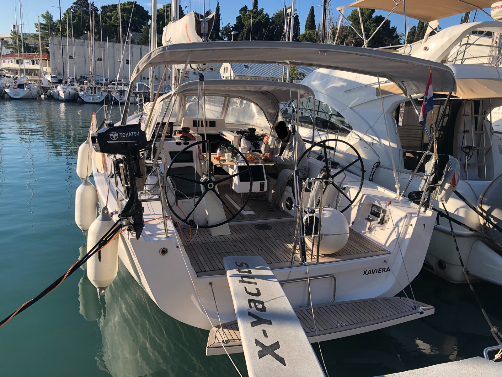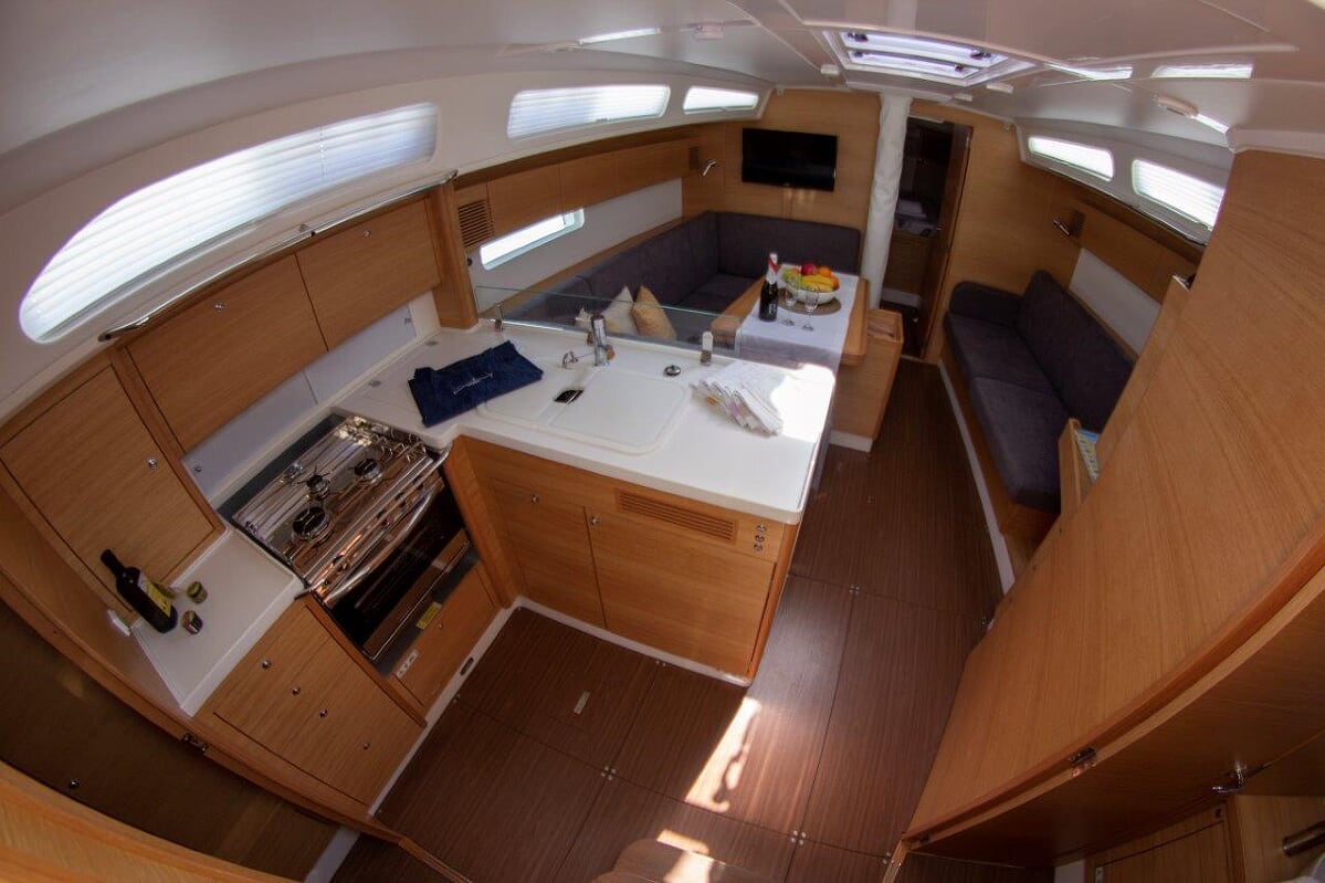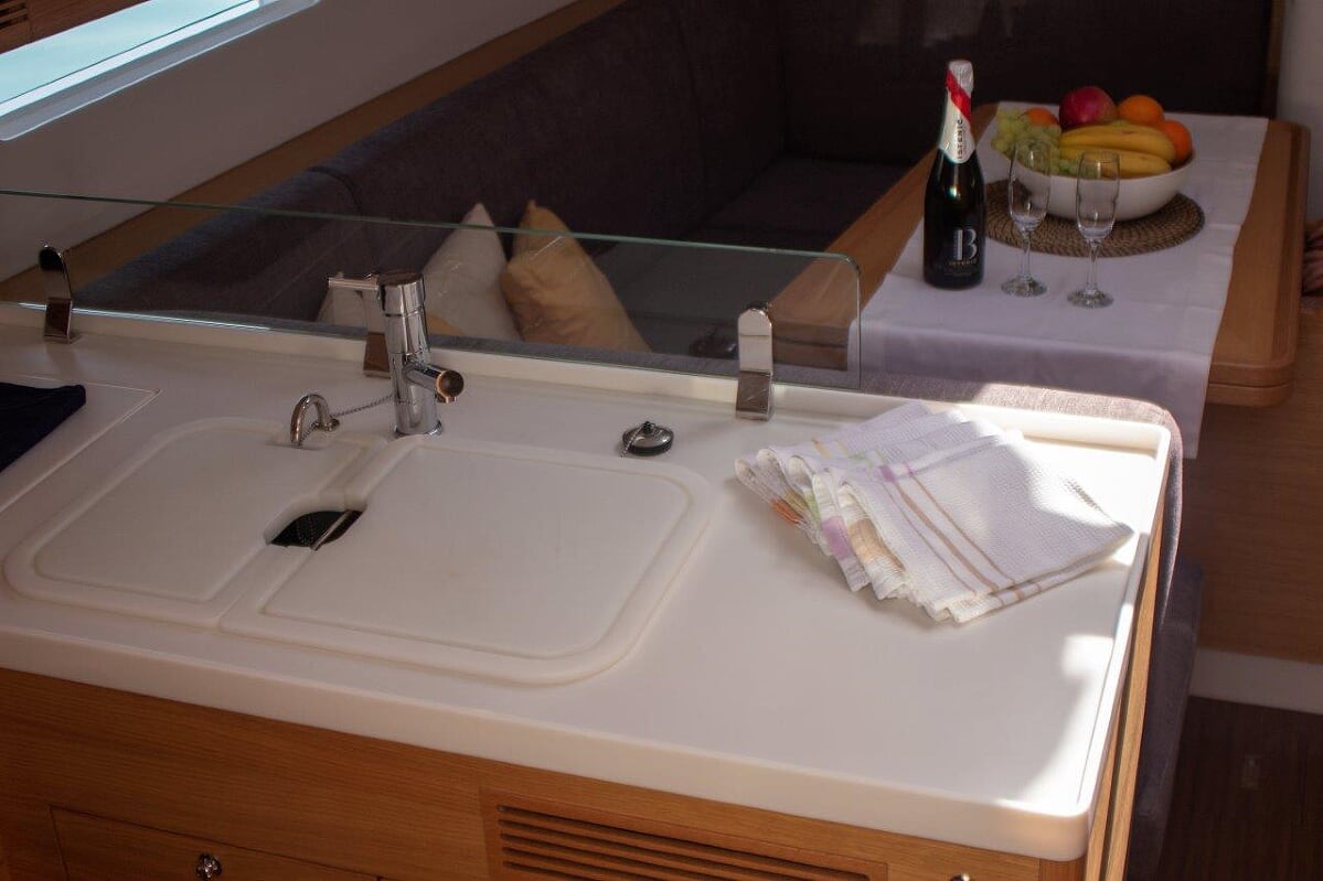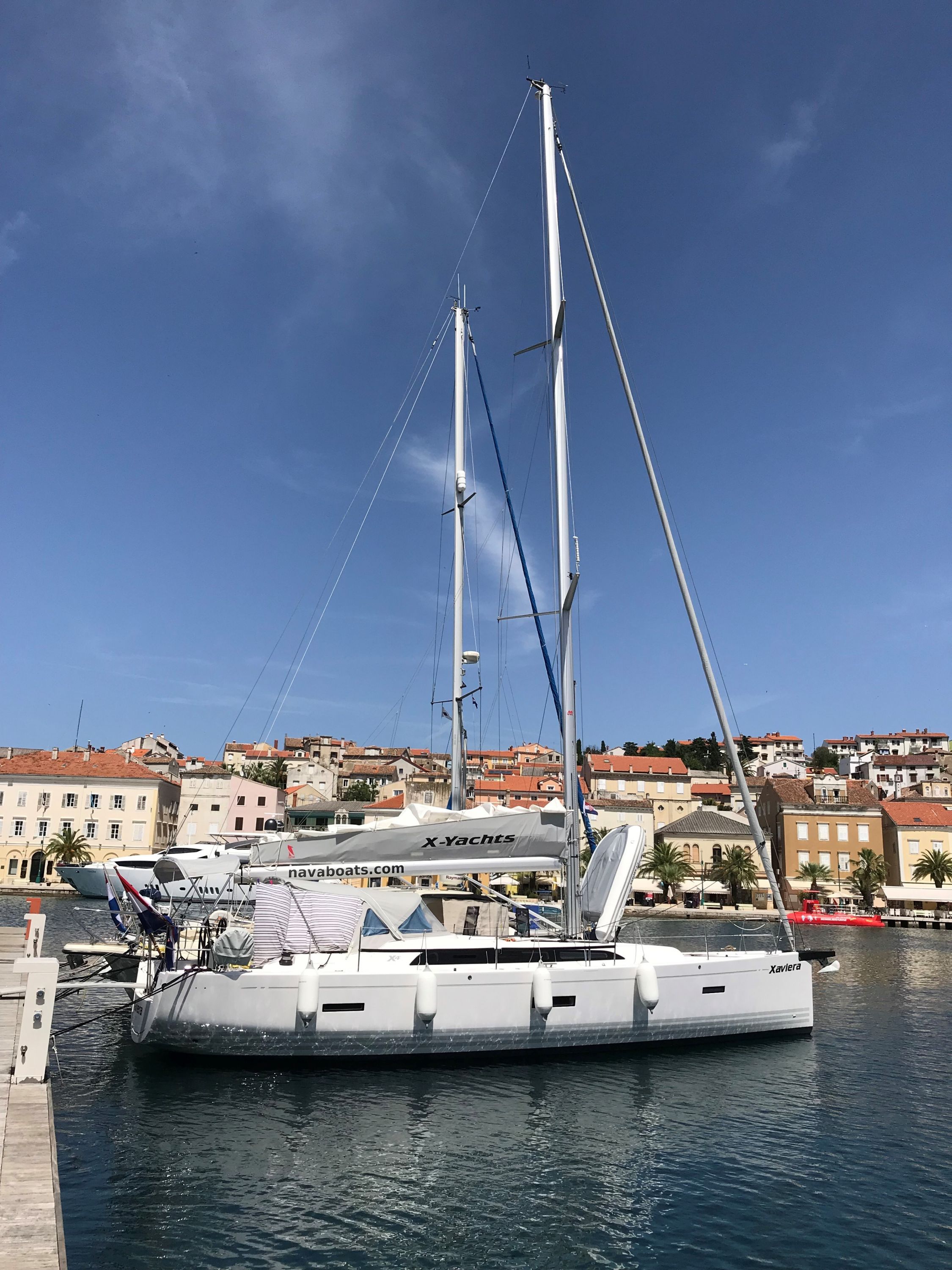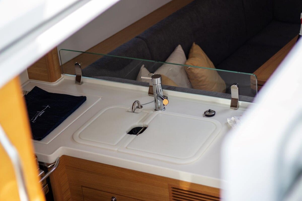 | Navigation | GPS mit Kartenplotter im Cockpit, Hafenhandbücher, Kompass, Seekarten, Tridata (Log, Echolot, Windm.) |