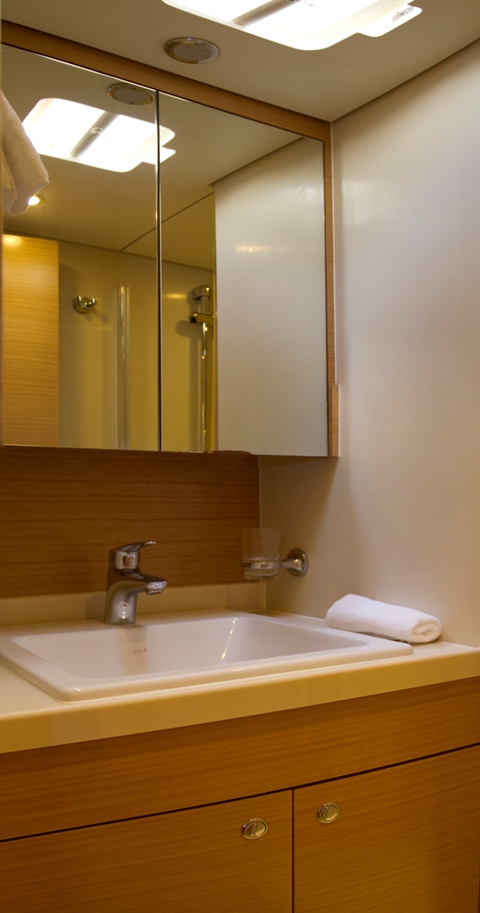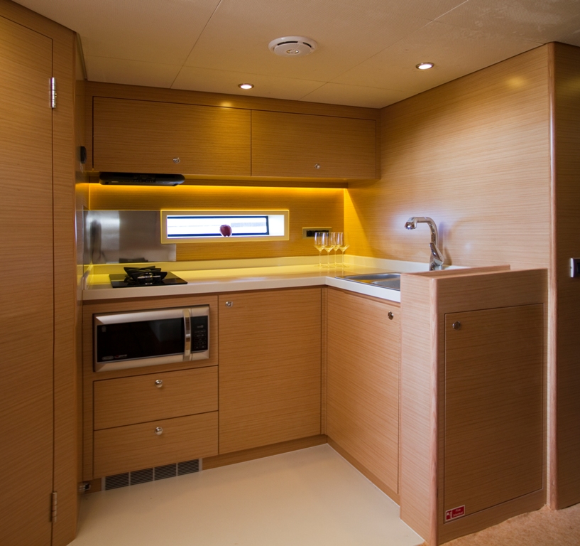 | Inside | Borduhr, DVD-Player, Eiswürfelmaschine, Generator, Heizung, Hi-Fi System, Induktionsherd, Kleiderbügel, Klimaanlage (ohne Landstrombedarf), Küchenutensilien, Kühlschrank, Landstromkabel, Luftpumpe für Beiboot, Mikrowelle, Radio mit CD, Trichter, TV, Warmwasser |