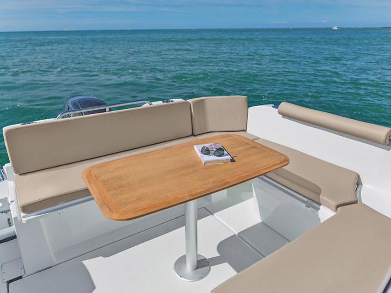 | Outside | 220 V-Landanschluss, Biminitop, Cockpitdusche, Cockpittisch, elektr. Ankerwinsch, Solaranlage |