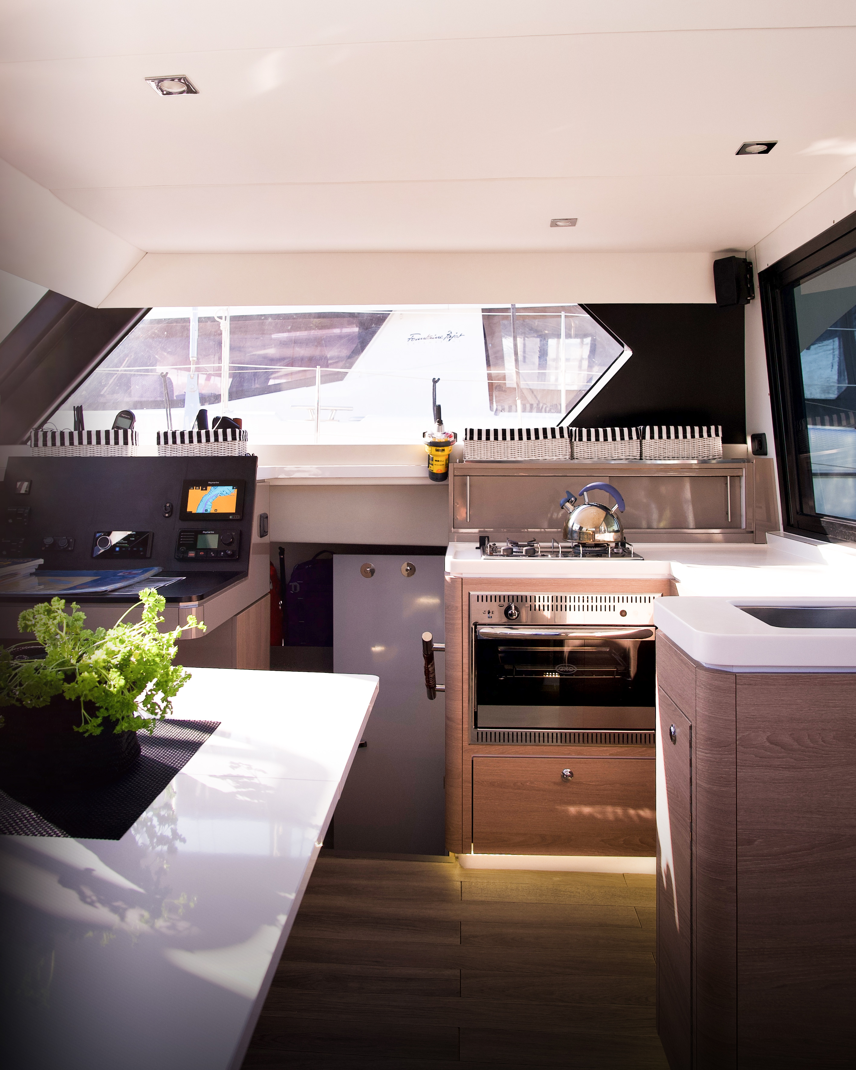 | Navigation | GPS mit Kartenplotter im Cockpit, Kartenplotter, Kompass, Navigationsbesteck, Seekarten, Sumlog, Tiefenmesser, Windmesser |