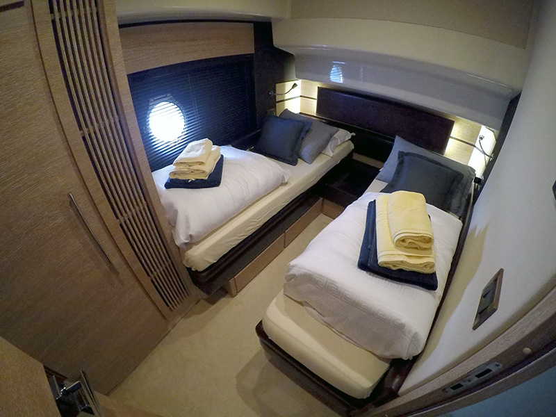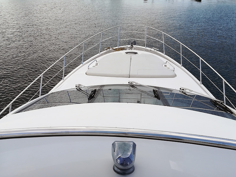 Outside 220 V-Landanschluss, Anker mit Kette, Anker mit Seil, Biminitop, Bootshaken, Cockpitdusche, Cockpitpolster, Cockpittisch, Deckbürste, Delta-Anker, elektr. Ankerwinsch, Fender, Festmacherleinen, Gangway, Kunststoff-Eimer (Pütz), Teakdeck, Wasserschlauch