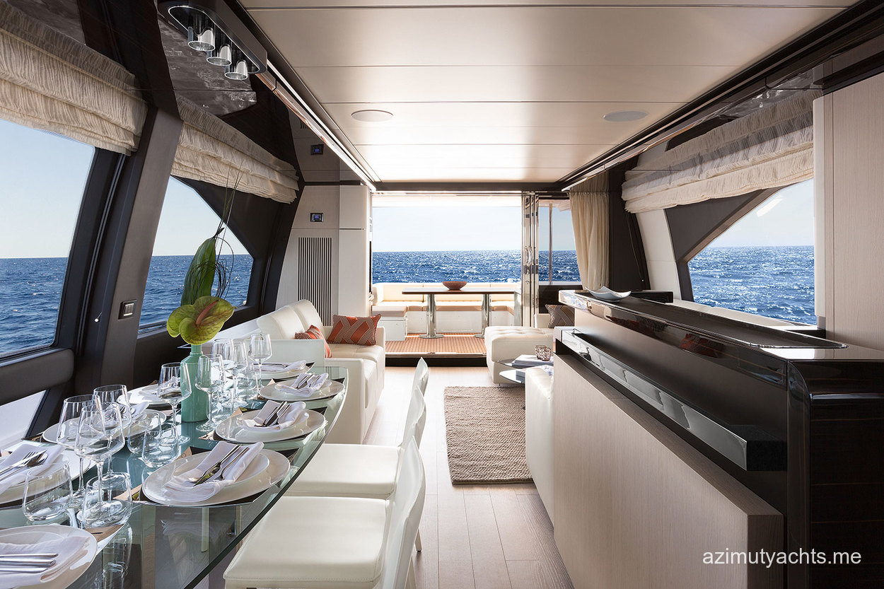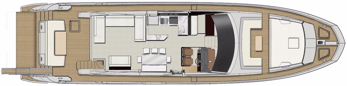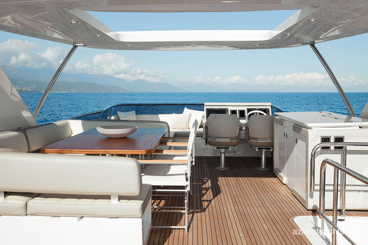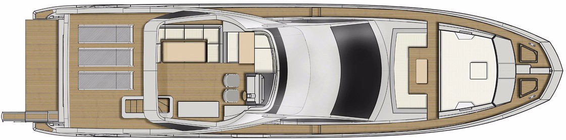 | Outside | Biminitop, Cockpittisch, Grill und Kühlschrank auf Flybridge, hydraul. Gangway, Satellitenantennen, Teak auf Badeplattform, Teak im Cockpit, Wet Bar |
