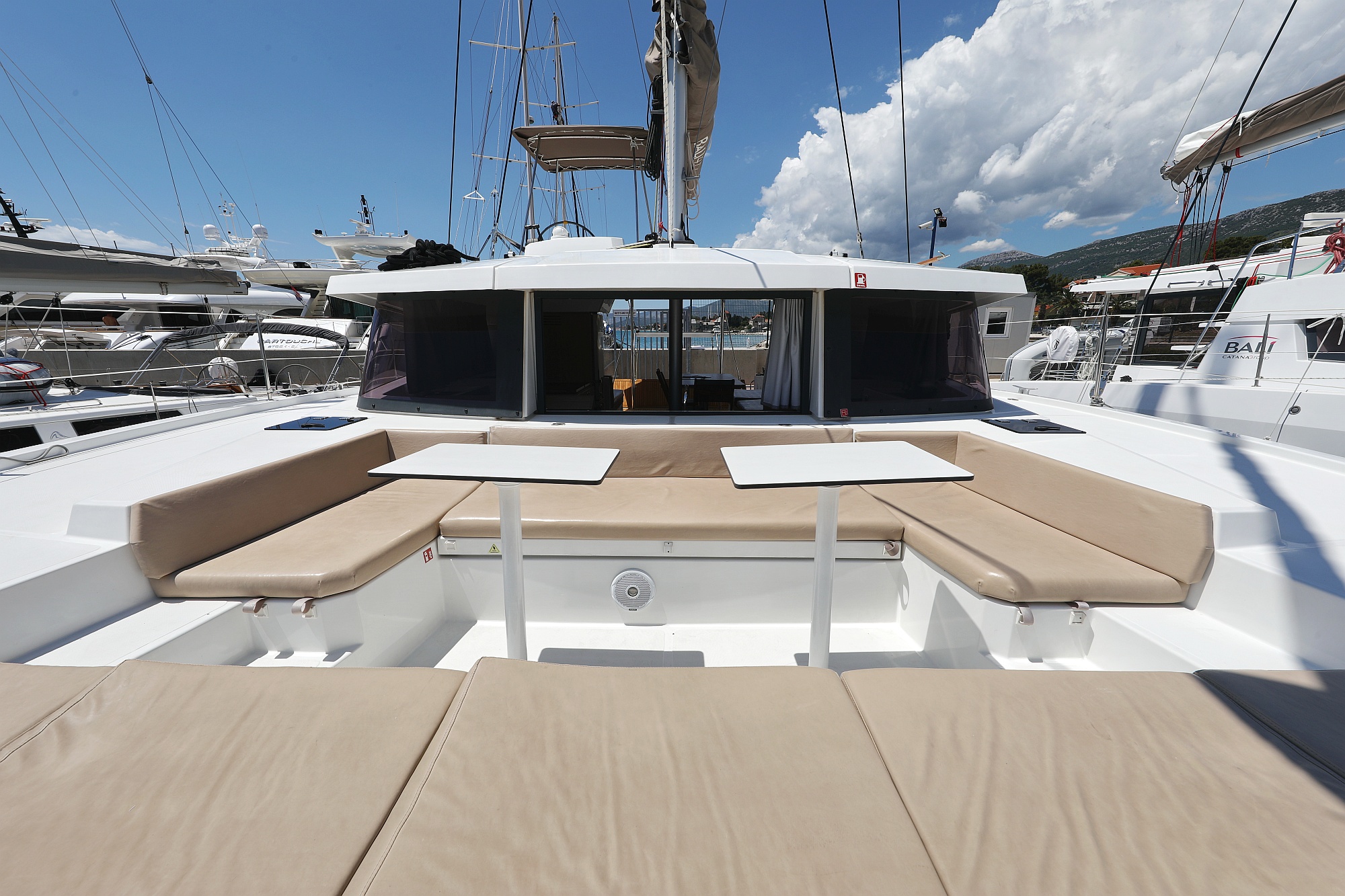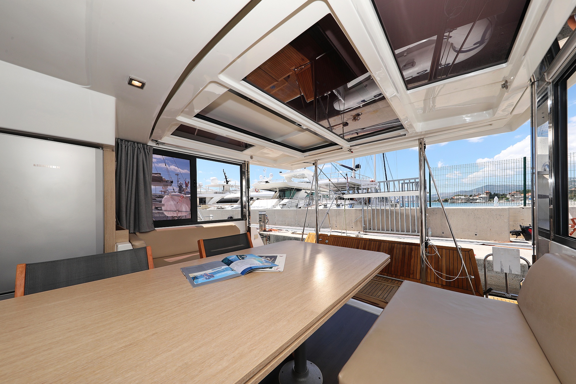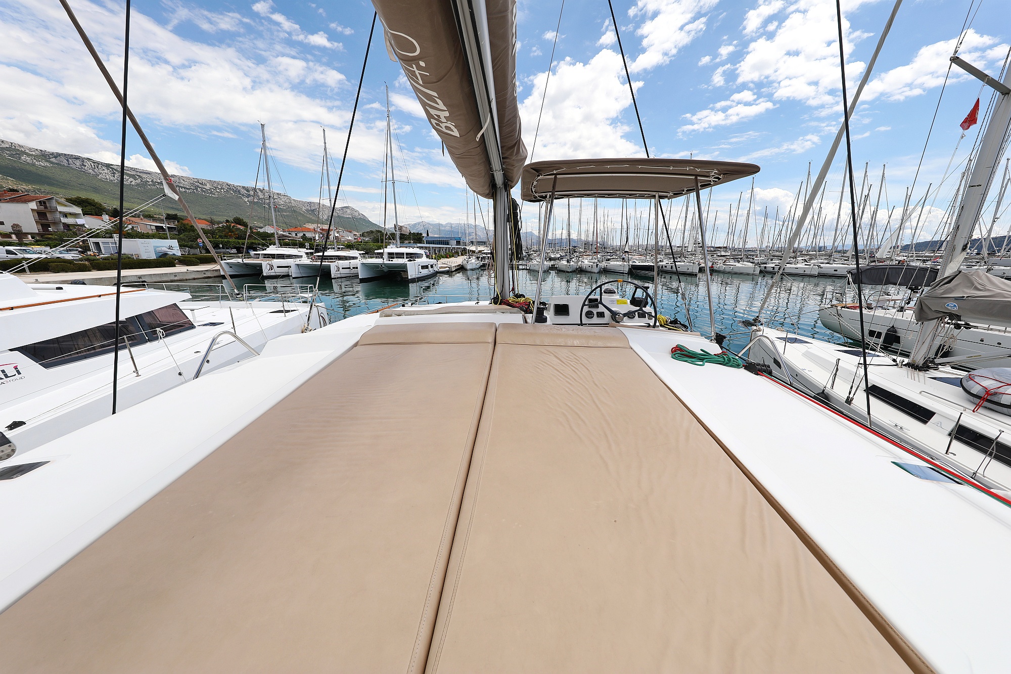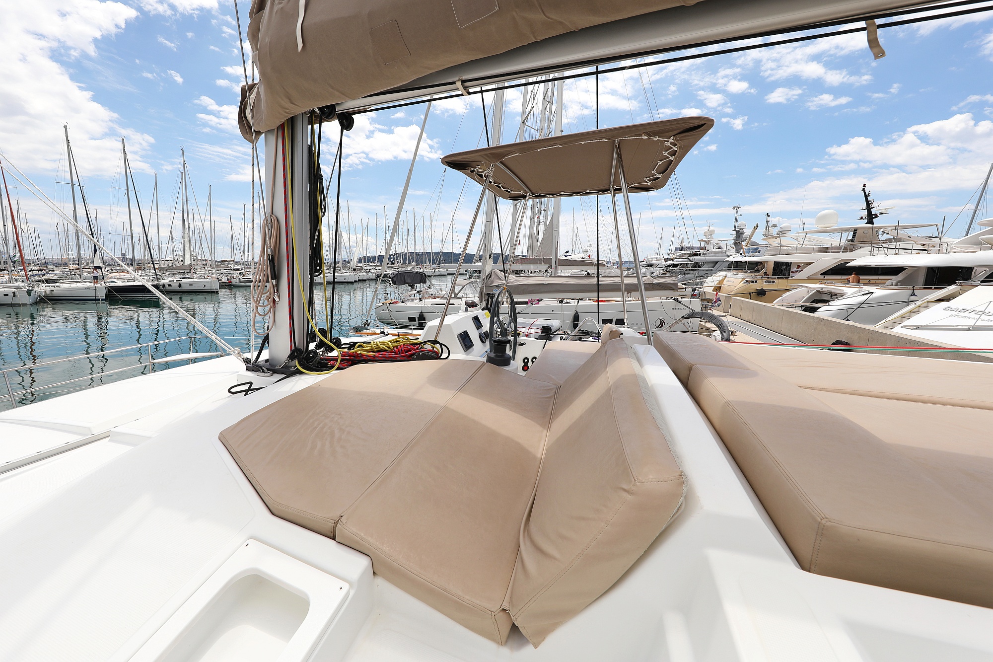 | Outside | Badeplattform, Biminitop, Cockpitdusche, Cockpitlautsprecher, Cockpitpolster, Cockpittisch, Deckpolster, elektr. Ankerwinsch, elektr. Großwinsch, Flybridge, Teak im Cockpit |