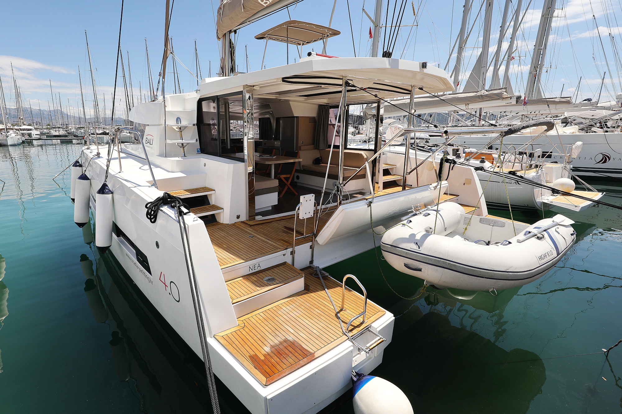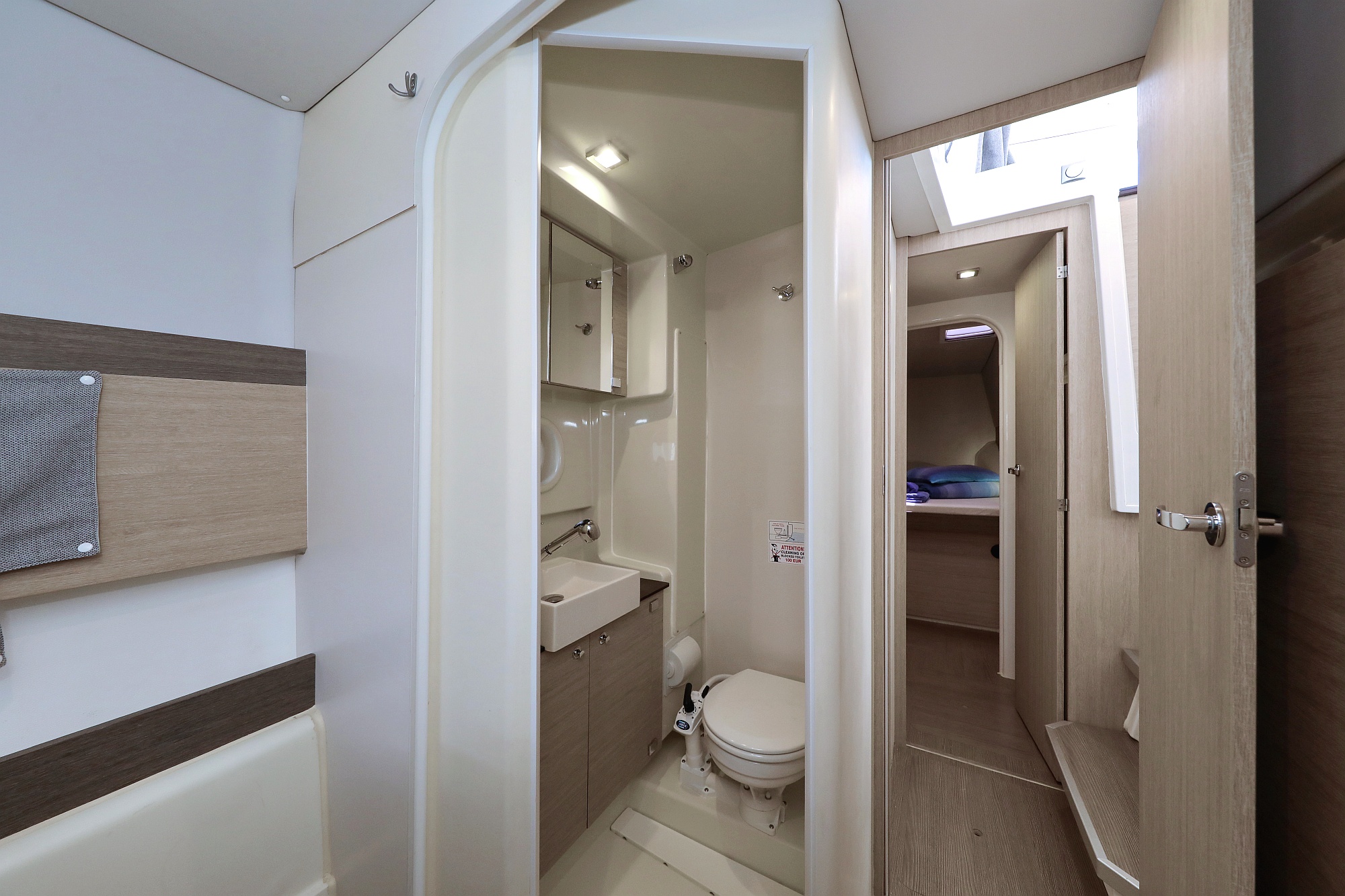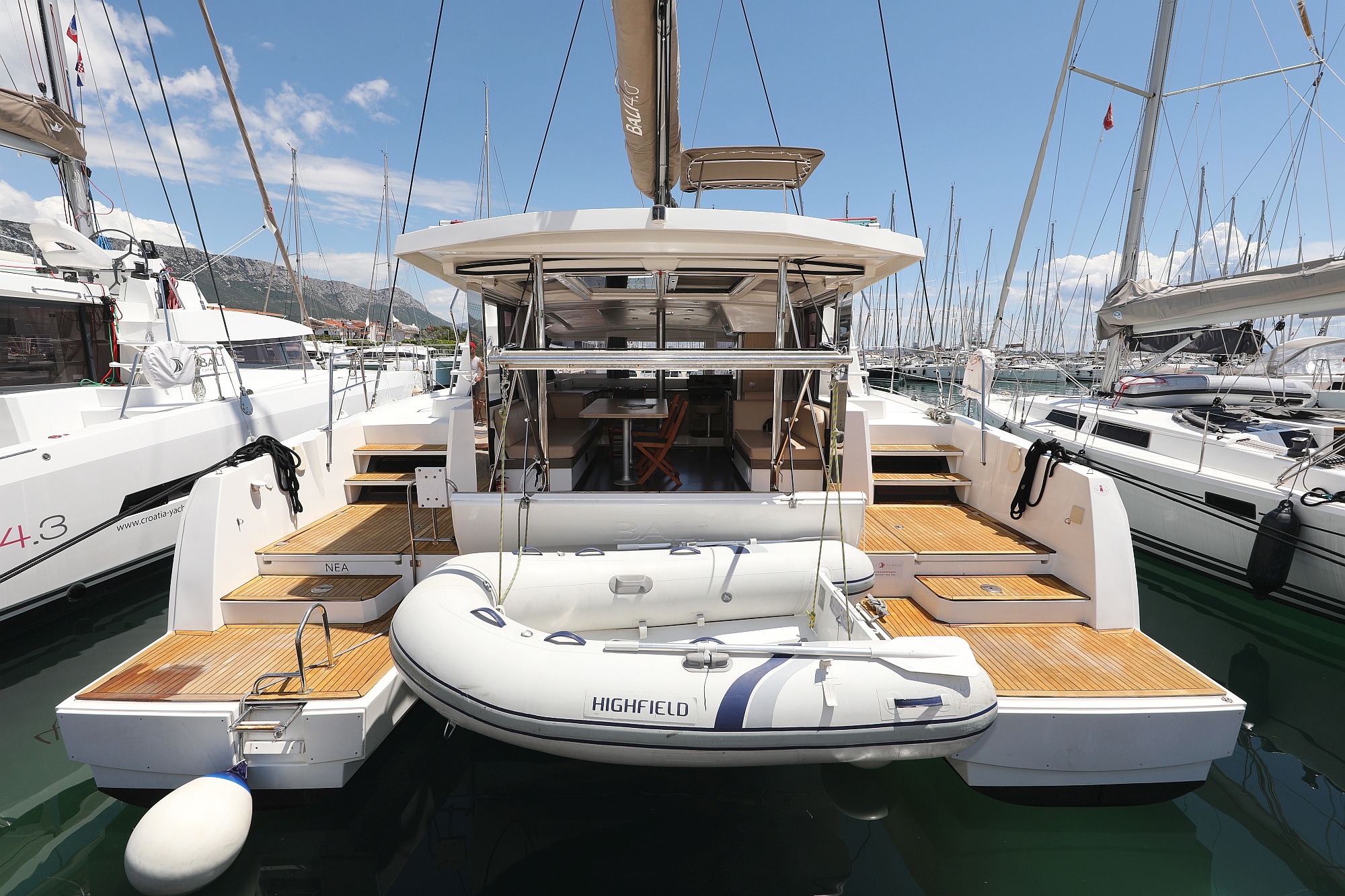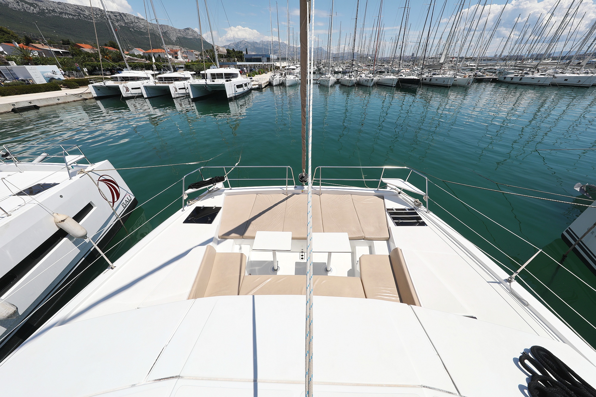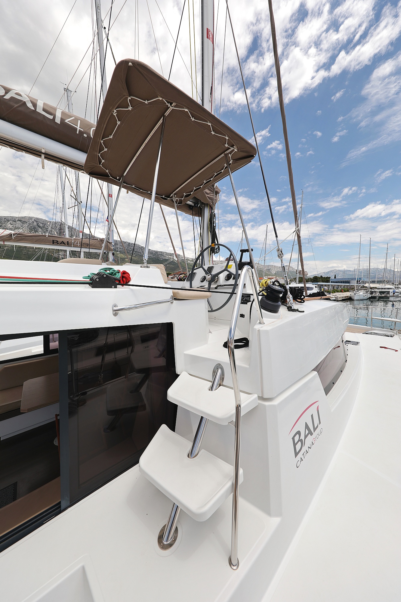 | Outside | Badeplattform, Biminitop, Cockpitdusche, Cockpitlautsprecher, Cockpitpolster, Cockpittisch, Deckpolster, elektr. Ankerwinsch, elektr. Großwinsch, Flybridge, Teak im Cockpit |