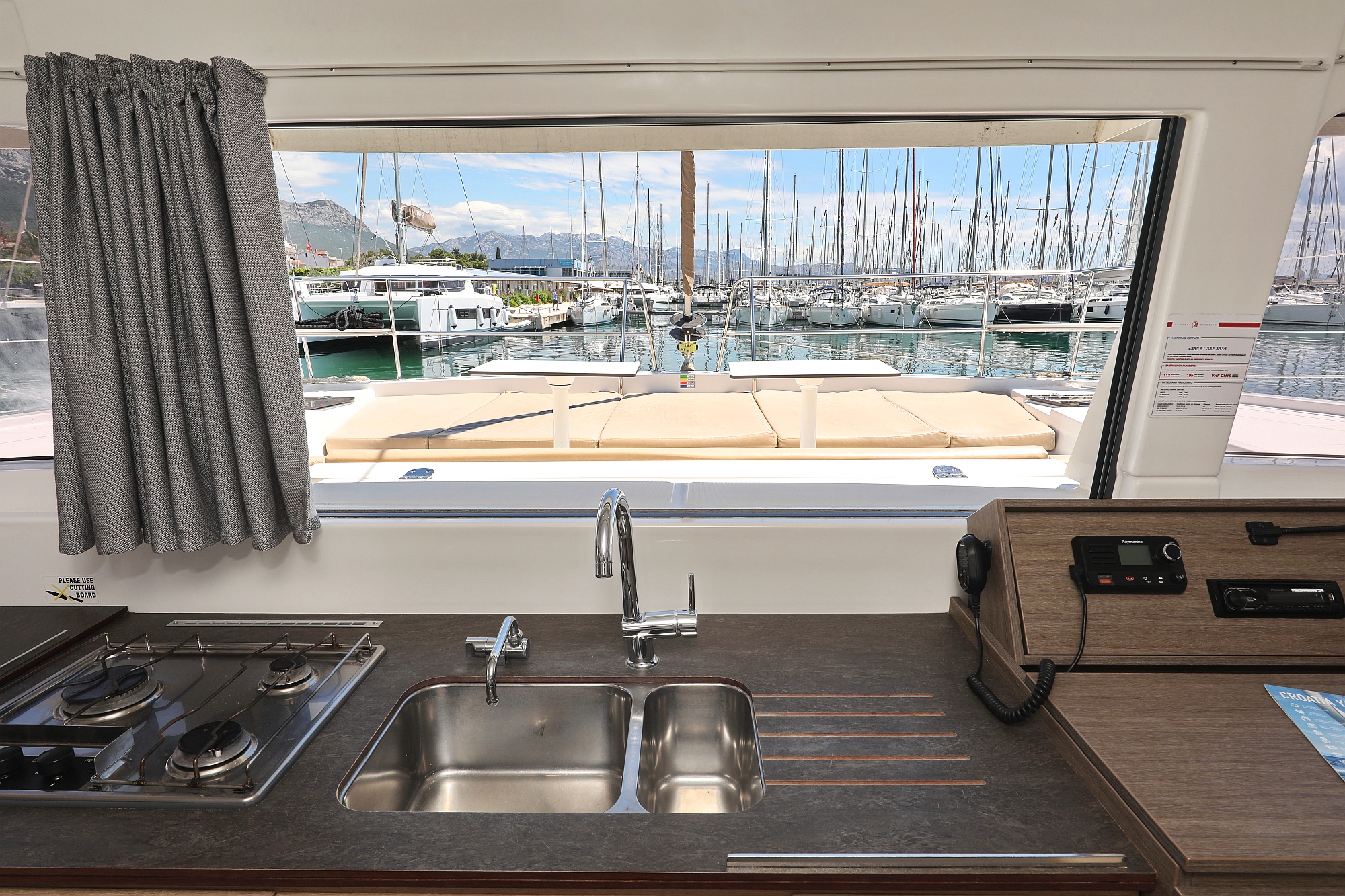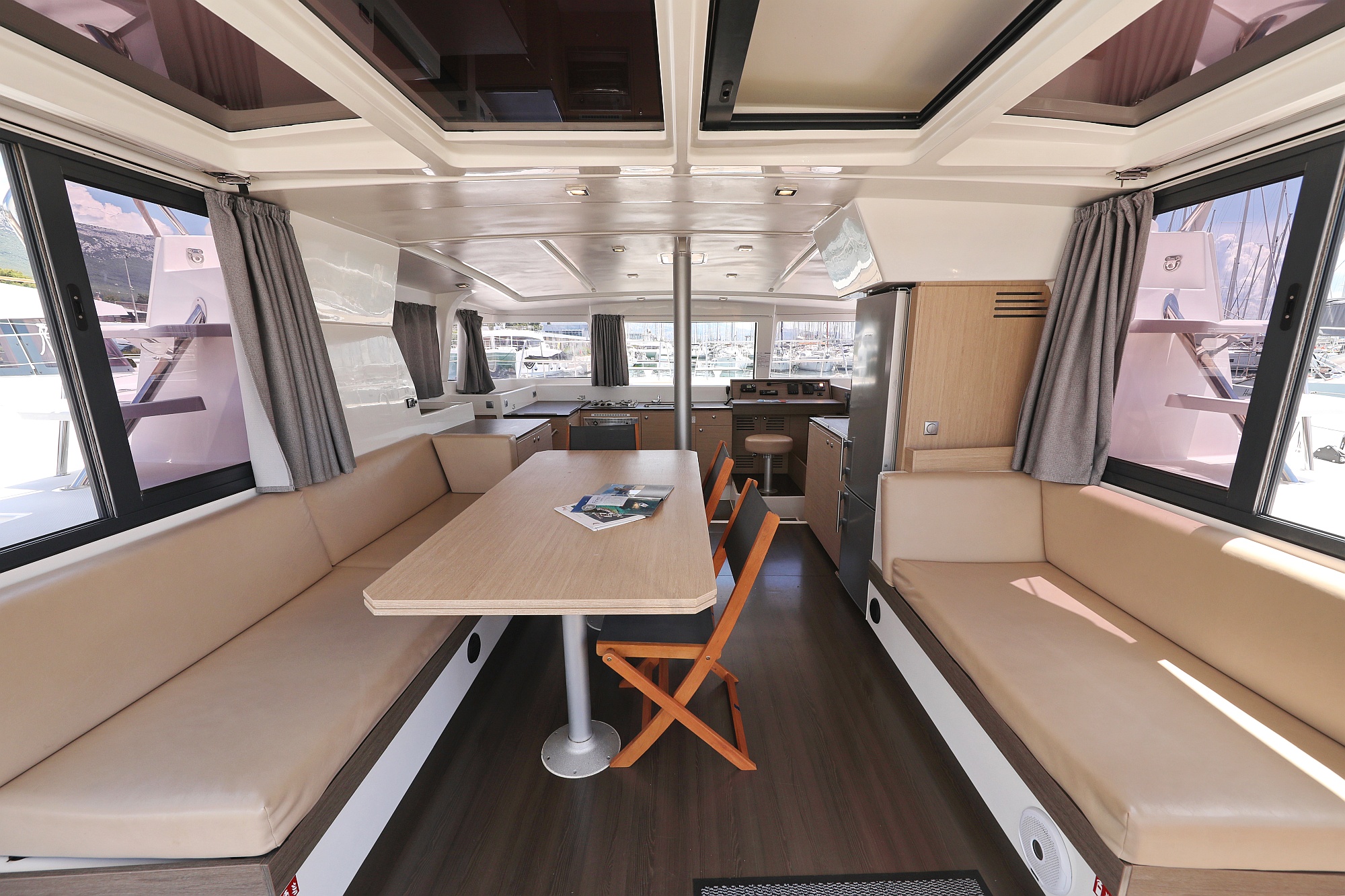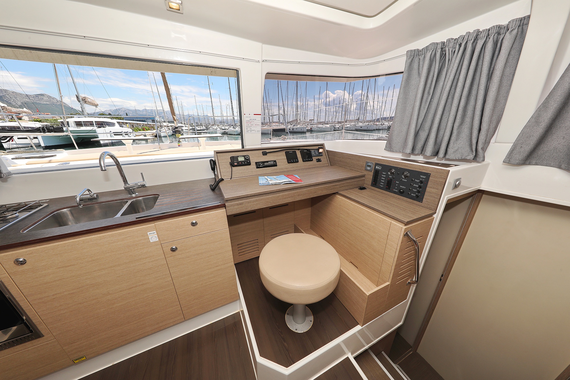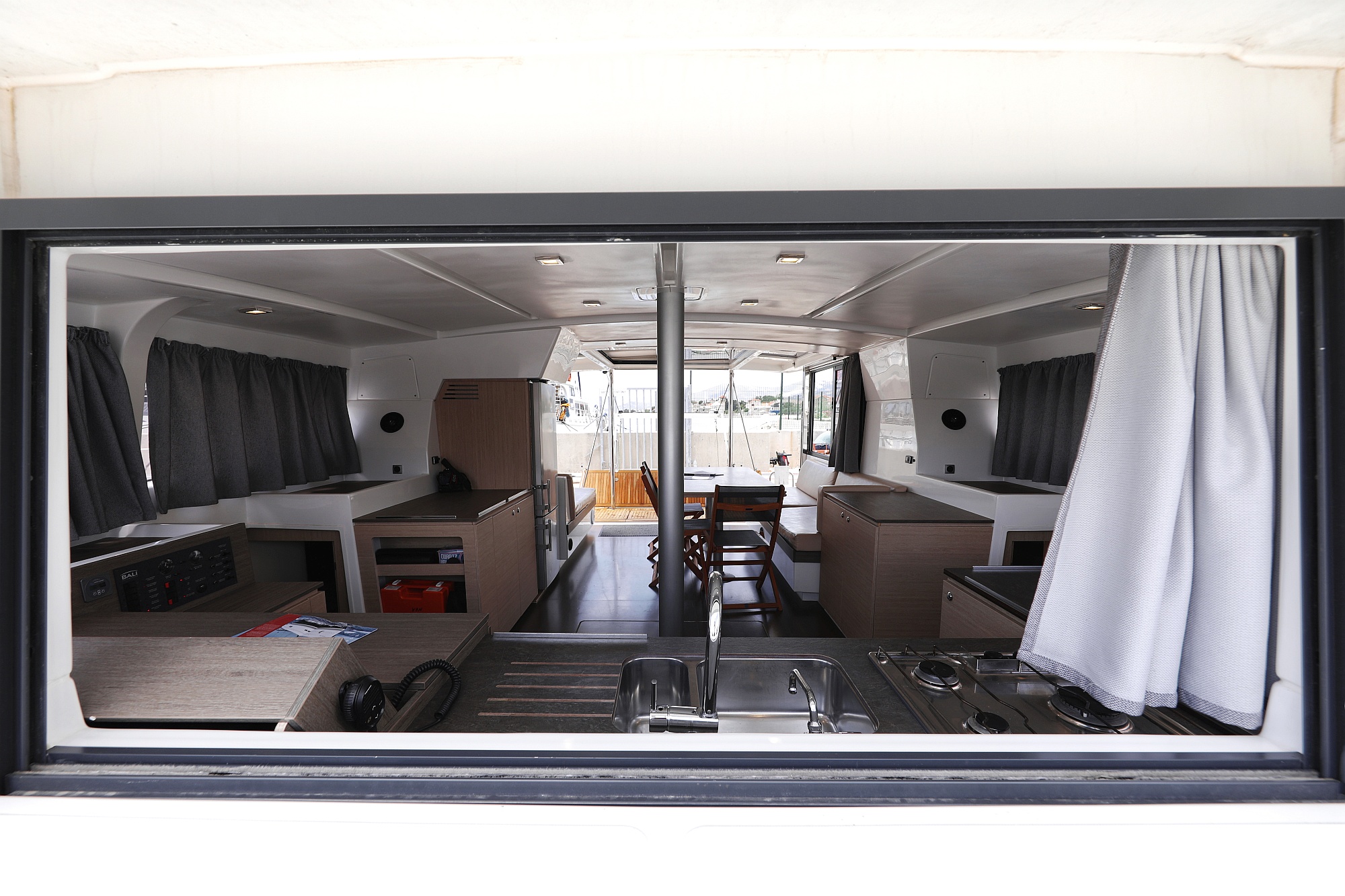 | Outside | Badeplattform, Biminitop, Cockpitdusche, Cockpitlautsprecher, Cockpitpolster, Cockpittisch, Deckpolster, elektr. Ankerwinsch, elektr. Großwinsch, Flybridge, Teak im Cockpit |